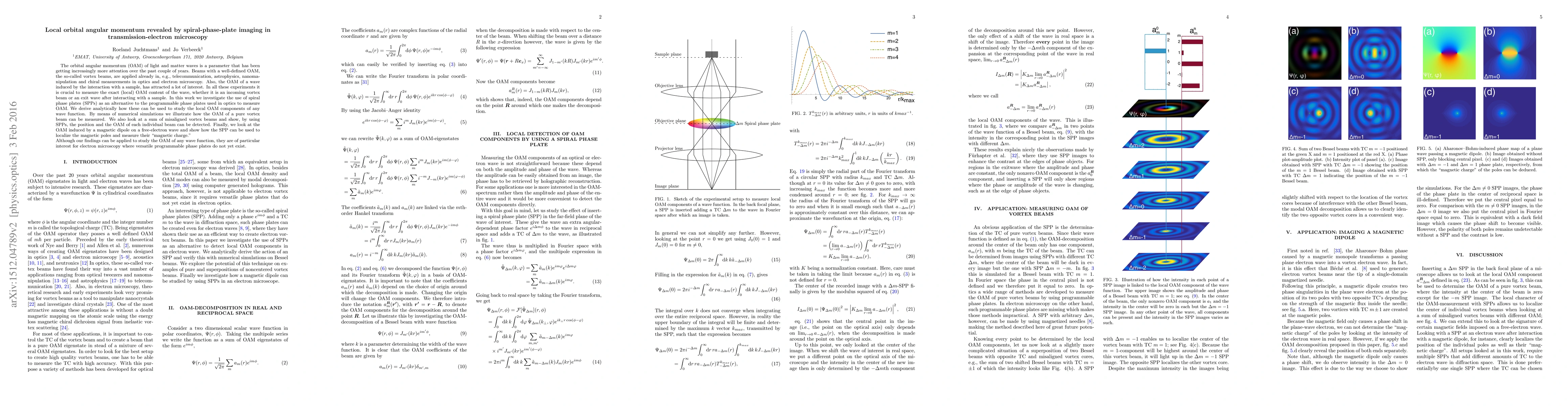 This paper explores the use of spiral phase plates in transmission electron microscopy to measure local orbital angular momentum (OAM) of waves, demonstrating their effectiveness through numerical simulations and applications to vortex beams and magnetic dipole interactions. The findings are particularly significant for electron microscopy, where programmable phase plates are not yet available.