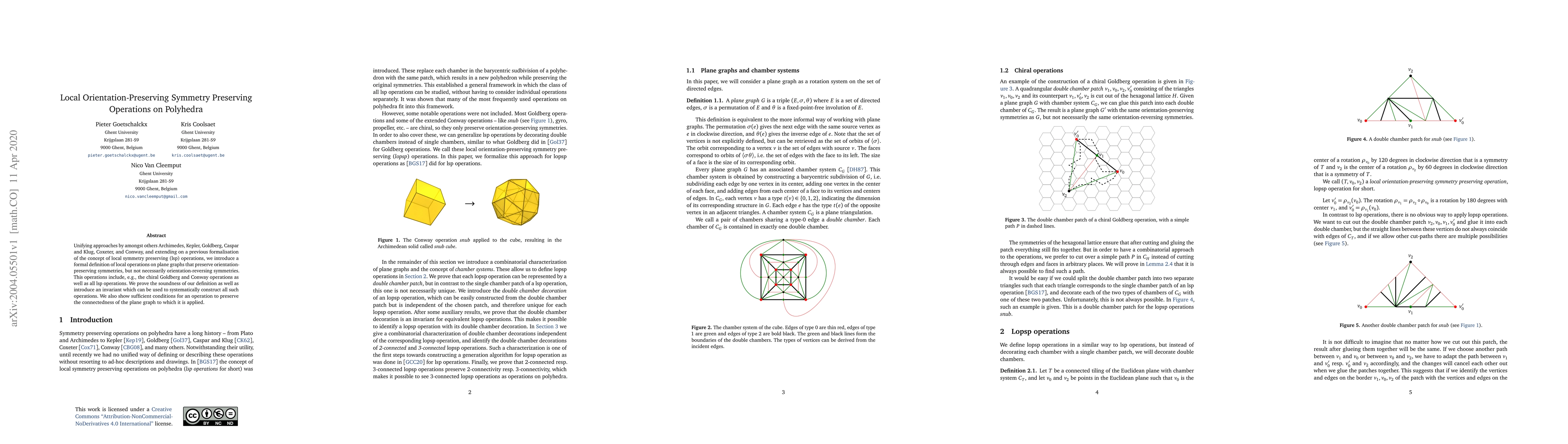 This paper formalizes local orientation-preserving symmetry preserving operations on polyhedra, extending previous work and including operations like chiral Goldberg and Conway operations. It introduces an invariant for constructing these operations and proves conditions for maintaining graph connectedness.