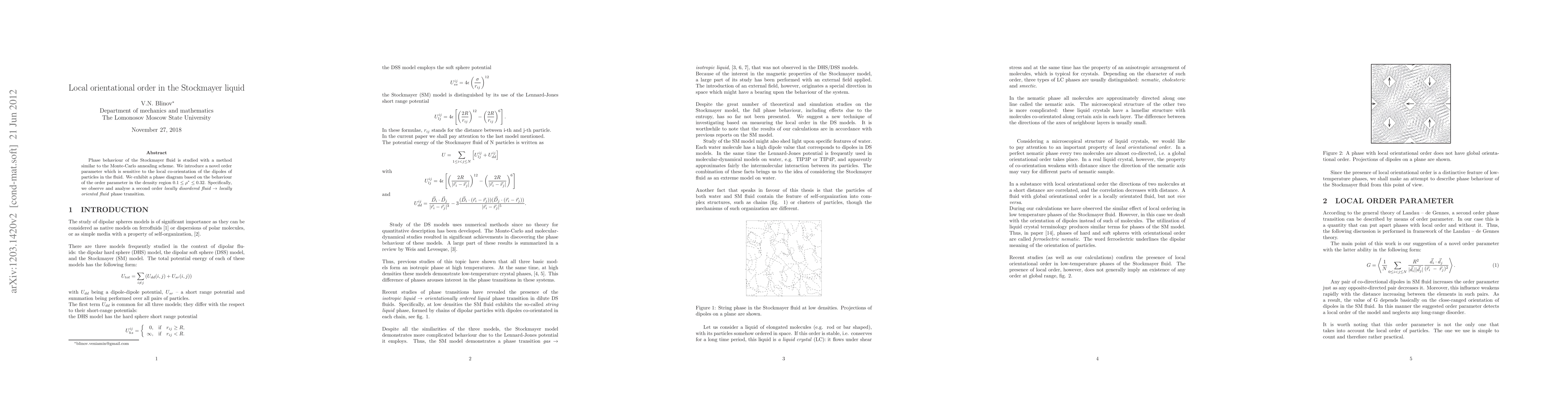 This study investigates the phase behavior of the Stockmayer fluid using a Monte-Carlo annealing approach, introducing a new order parameter to detect local dipole orientation. The research reveals a second-order phase transition from a locally disordered to a locally oriented fluid phase within the density range of 0.1 ≤ ρ* ≤ 0.32.