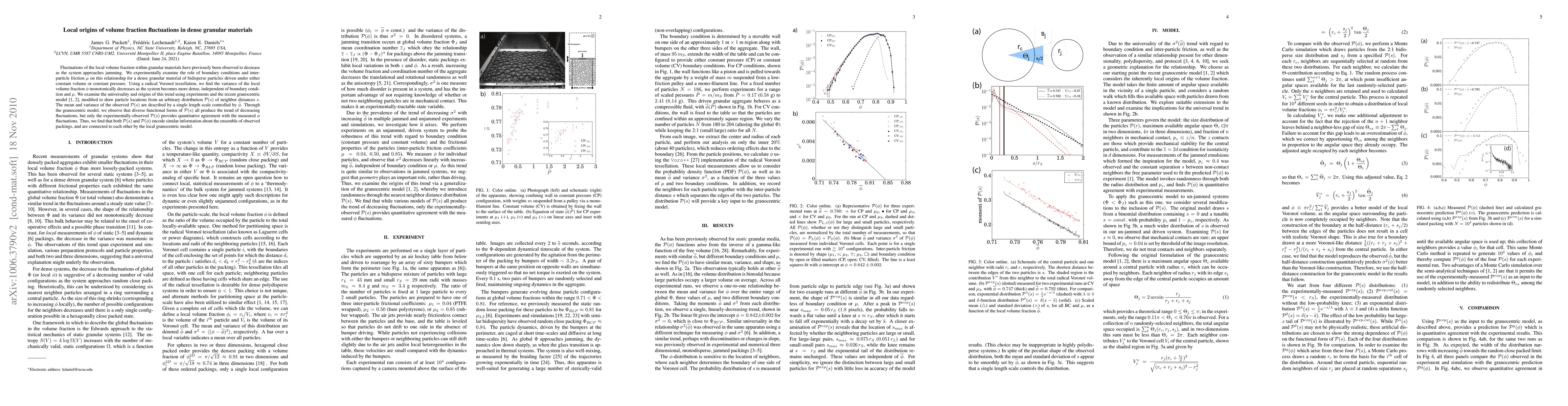 Research shows that fluctuations in local volume fraction of dense granular materials decrease as they become more dense, regardless of boundary conditions or friction, and this trend is explained by a modified model of particle distribution.