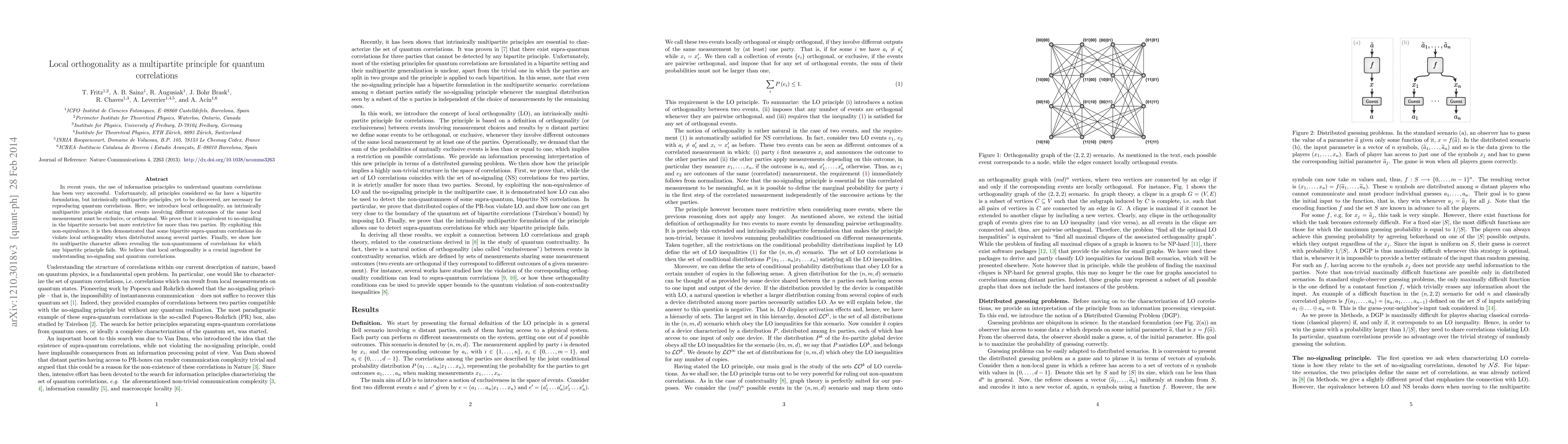 This paper introduces local orthogonality as a multipartite principle for quantum correlations, showing it is equivalent to no-signaling in bipartite scenarios but more restrictive for multiparty systems. It demonstrates that some supra-quantum correlations violate local orthogonality when distributed among multiple parties, highlighting its importance in understanding quantum correlations.