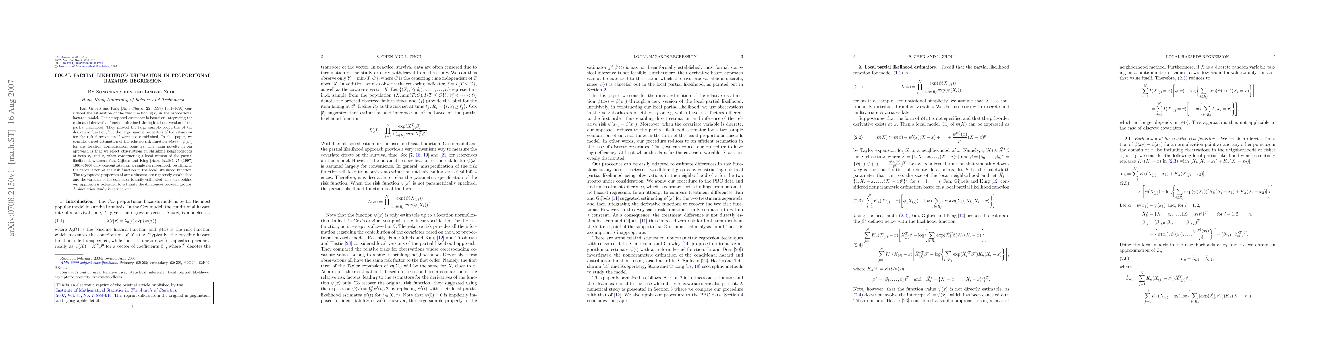 This paper proposes a new approach for estimating the risk function in proportional hazards regression, using local partial likelihood estimation with shrinking neighborhoods around both the location normalization point and the event time. The results show rigorously established asymptotic properties and easily estimable variance of the estimator.
