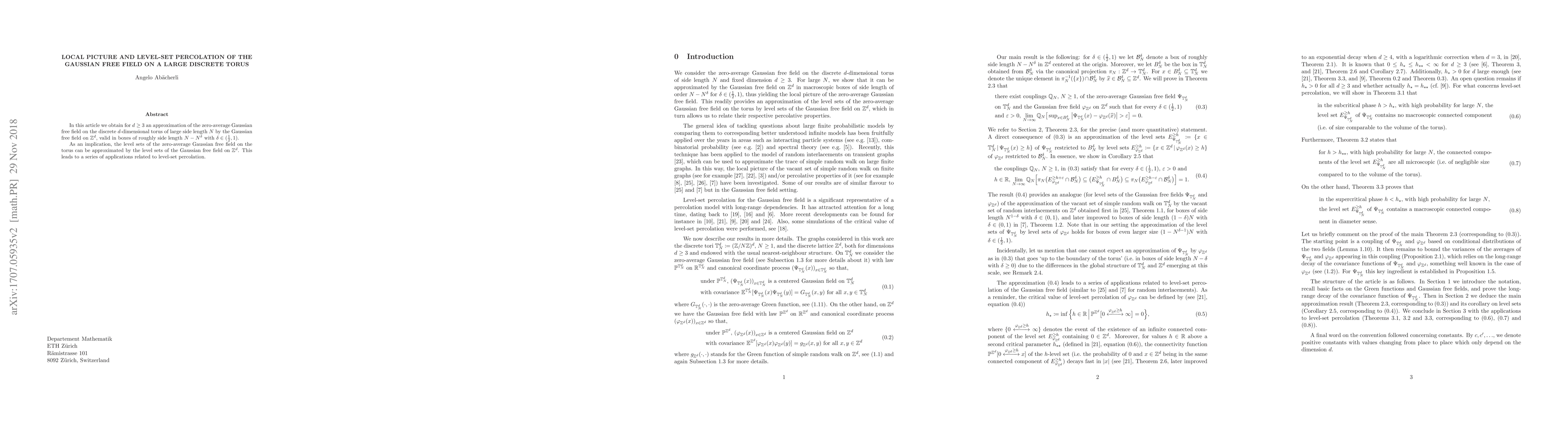This paper approximates the zero-average Gaussian free field on a large discrete torus by the field on $\mathbb Z^d$, showing that level sets can be similarly approximated. It demonstrates that for high levels, the level sets likely contain no large connected components, while low levels likely contain a large connected component.