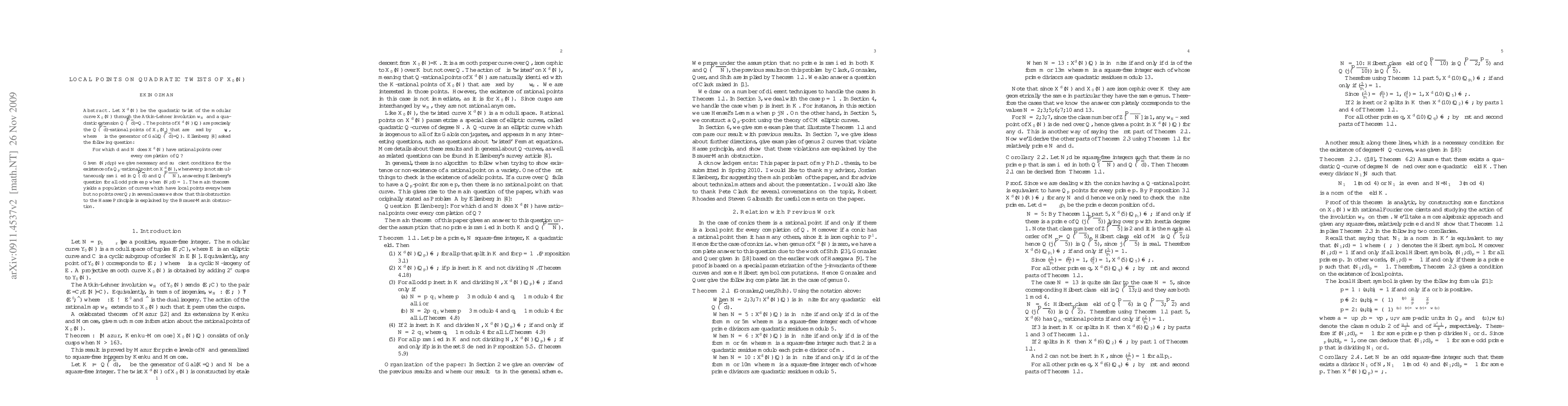 This paper studies the rational points on quadratic twists of modular curves X_0(N) and provides necessary and sufficient conditions for the existence of local points over Q_p for odd primes p, answering Ellenberg's question. It identifies a class of curves with local points everywhere but no rational points, often obstructed by the Brauer-Manin obstruction.