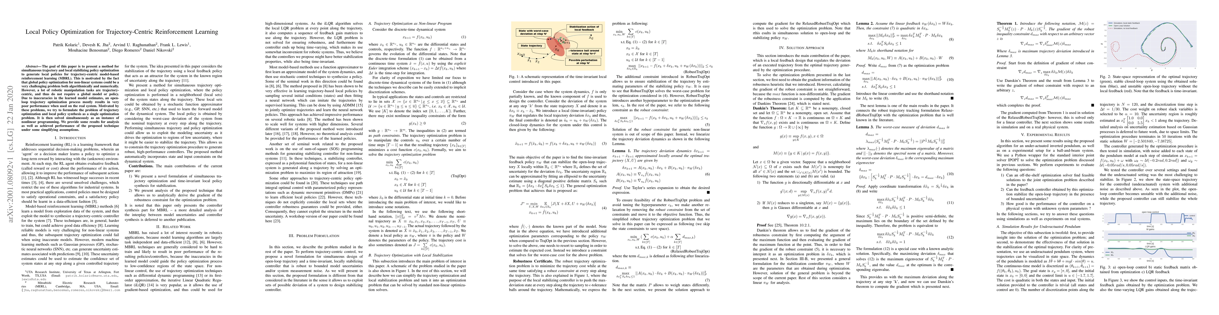 This paper proposes a method for optimizing both trajectory and local stabilizing policies in trajectory-centric reinforcement learning, addressing the challenges of global policy optimization in non-linear systems. The approach formulates trajectory optimization and local policy synthesis as a single nonlinear programming problem to improve performance on real robotic systems.