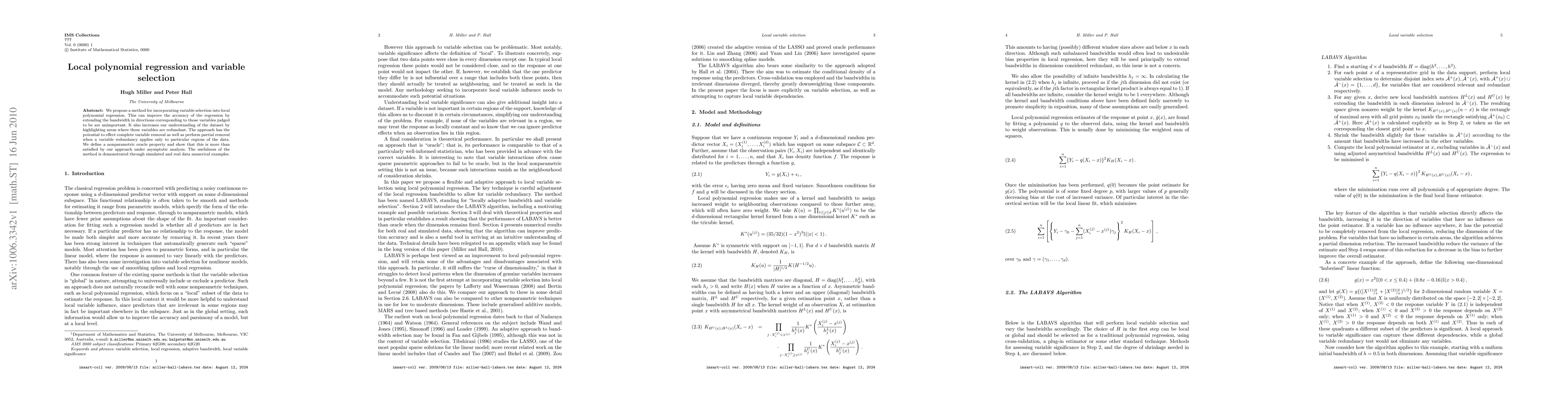 We propose a method for incorporating variable selection into local polynomial regression. This can improve the accuracy of the regression by extending the bandwidth in directions corresponding to those variables judged to be are unimportant. It also increases our understanding of the dataset by highlighting areas where these variables are redundant. The approach has the potential to effect complete variable removal as well as perform partial removal when a variable redundancy applies only to particular regions of the data. We define a nonparametric oracle property and show that this is more than satisfied by our approach under asymptotic analysis. The usefulness of the method is demonstrated through simulated and real data numerical examples.