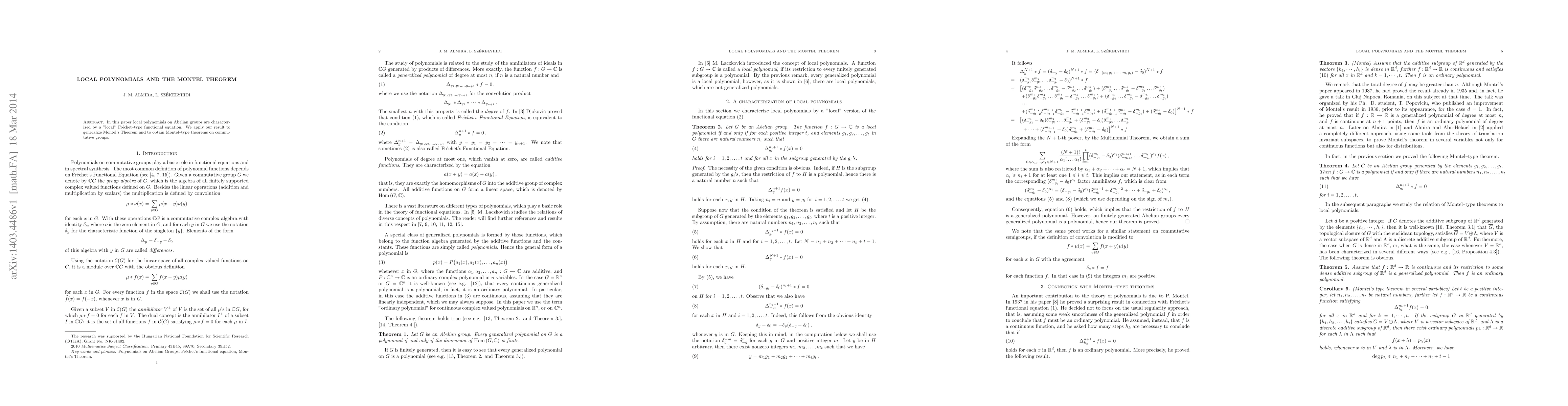 In this paper local polynomials on Abelian groups are characterized by a "local" Fr\'echet-type functional equation. We apply our result to generalize Montel's Theorem and to obtain Montel-type theorems on commutative groups.