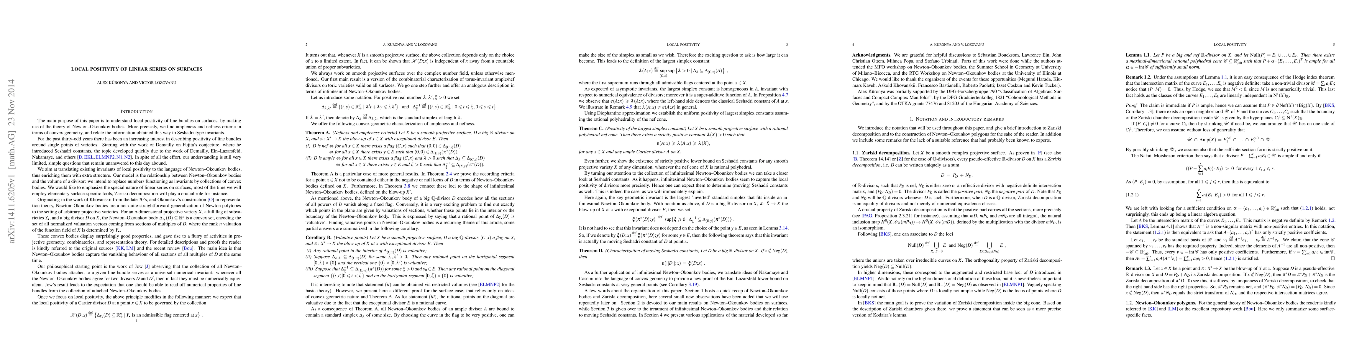 Researchers study how positive line bundles on surfaces relate to convex geometry using Newton-Okounkov polygons, leading to new characterizations of ample and nef line bundles and insights into Seshadri constants.