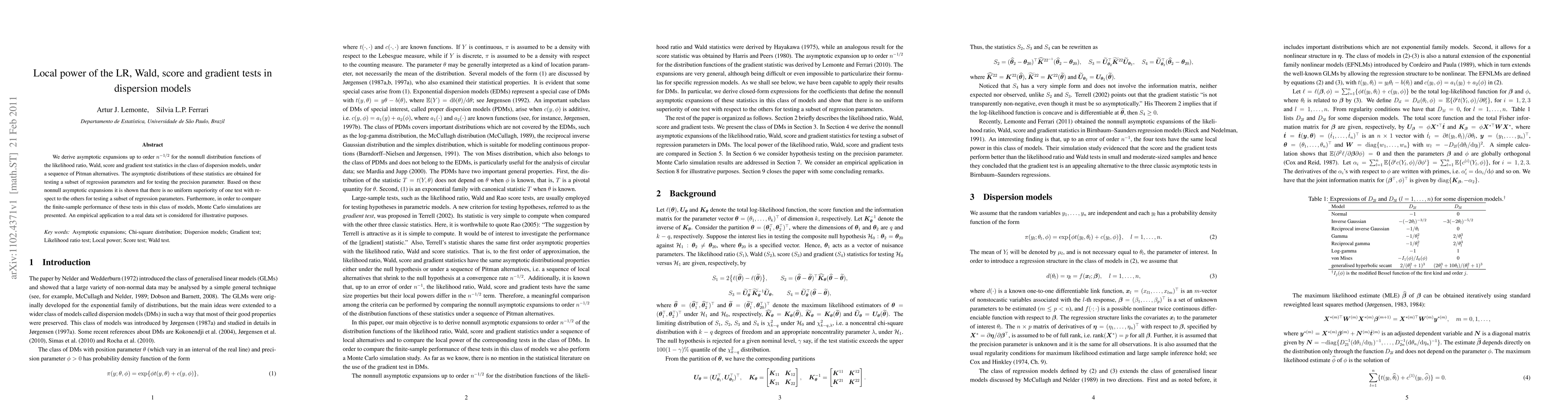 This research paper investigates the performance of different tests for dispersion models, finding no uniform superiority among likelihood ratio, Wald, score, and gradient tests. It also compares their finite-sample performance through Monte Carlo simulations and provides an empirical application to a real data set.