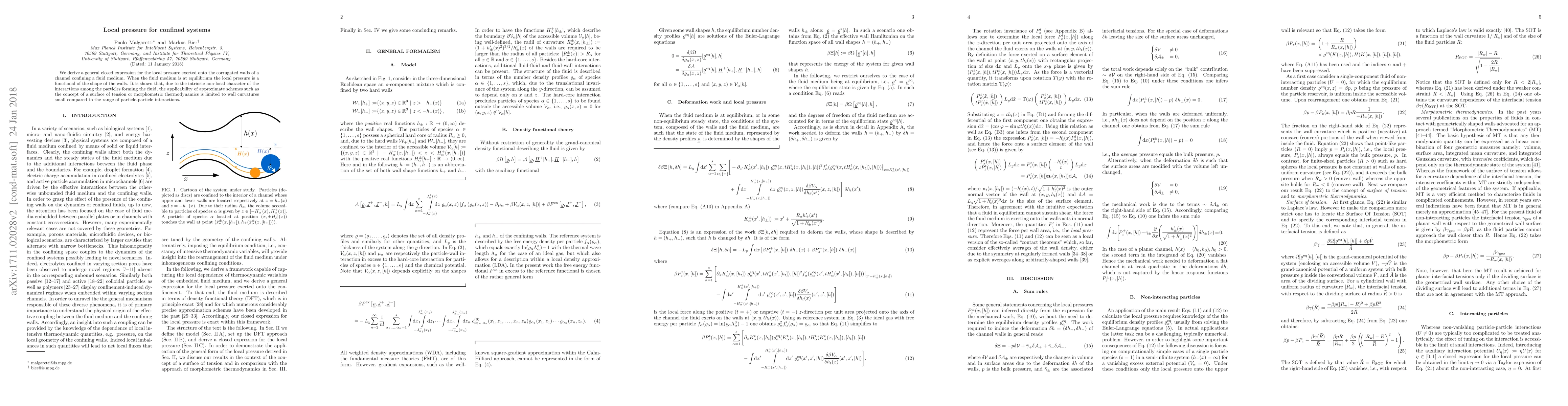 We derive a general closed expression for the local pressure exerted onto the corrugated walls of a channel confining a fluid medium. When the fluid medium is at equilibrium the local pressure is a functional of the shape of the walls. It is shown that, due to the intrinsic non-local character of the interactions among the particles forming the fluid, the applicability of approximate schemes such as the concept of a surface of tension or morphometric thermodynamics is limited to wall curvatures small compared to the range of particle-particle interactions.