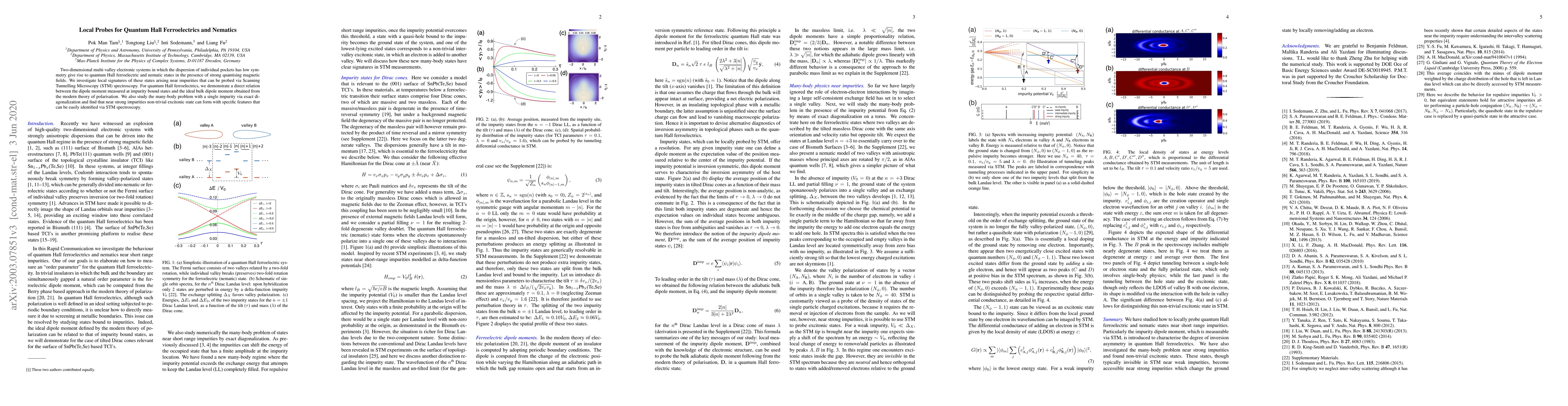 Two-dimensional multi-valley electronic systems in which the dispersion of individual pockets has low symmetry give rise to quantum Hall ferroelectric and nematic states in the presence of strong quantising magnetic fields. We investigate local signatures of these states arising near impurities that can be probed via Scanning Tunnelling Microscopy (STM) spectroscopy. For quantum Hall ferroelectrics, we demonstrate a direct relation between the dipole moment measured at impurity bound states and the ideal bulk dipole moment obtained from the modern theory of polarisation. We also study the many-body problem with a single impurity via exact diagonalization and find that near strong impurities non-trivial excitonic state can form with specific features that can be easily identified via STM spectroscopy.