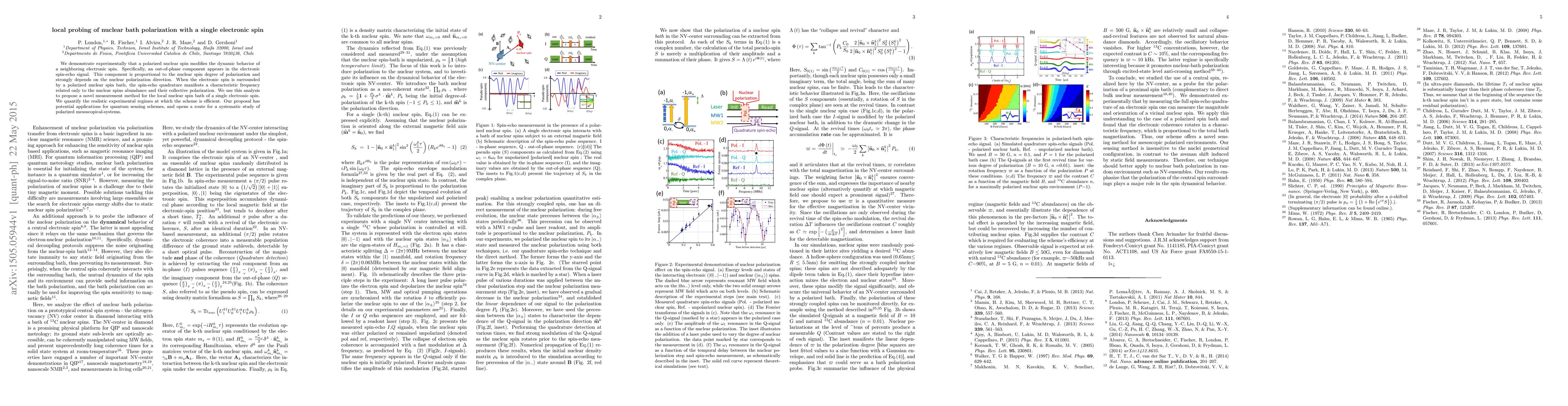 This paper demonstrates that a polarized nuclear spin influences the dynamic behavior of an adjacent electronic spin, introducing an out-of-phase component in the electronic spin-echo signal. This method provides a novel approach to measure the local nuclear spin bath polarization around a single electronic spin, with potential applications in quantum sensing and the study of mesoscopic systems.