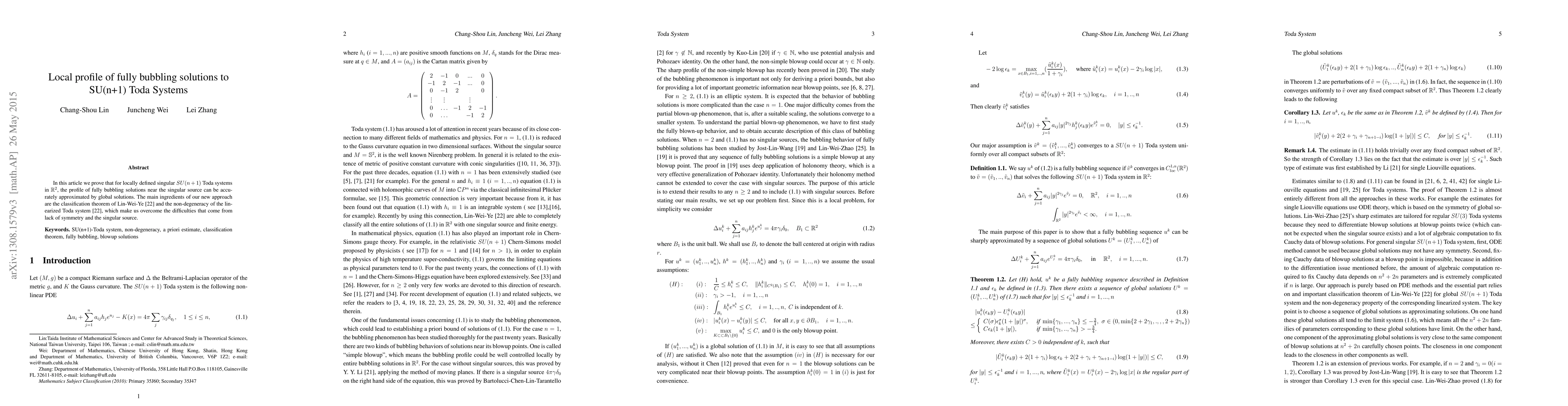 This paper proves that fully bubbling solutions to locally defined singular SU(n+1) Toda systems in R^2 can be approximated by global solutions, leveraging the classification theorem of Lin-Wei-Ye and the non-degeneracy of the linearized Toda system to address challenges from asymmetry and singular sources.