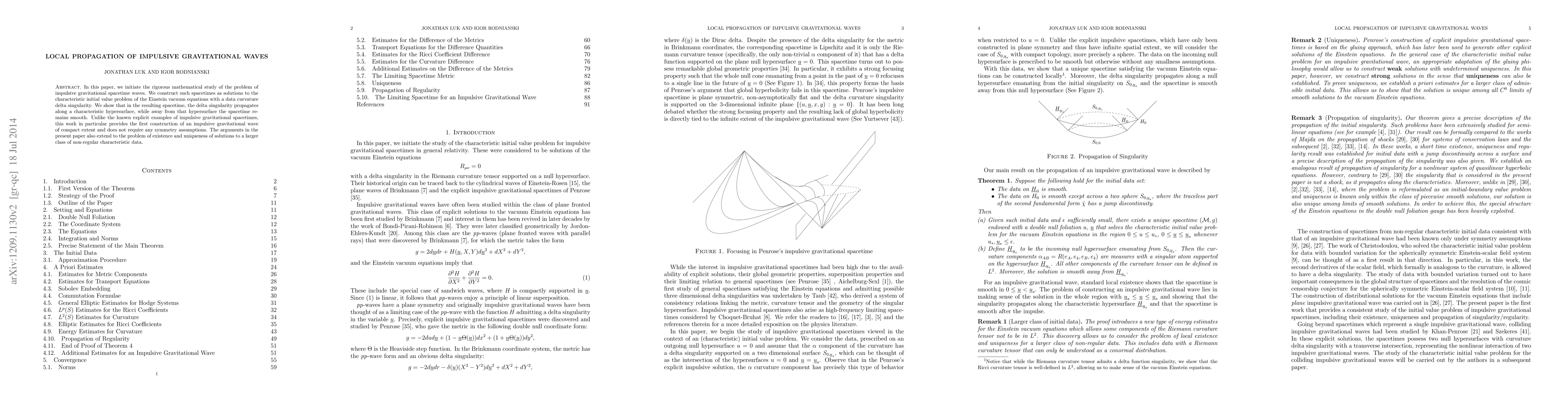 This paper rigorously studies impulsive gravitational waves, constructing spacetimes with a delta singularity that propagates along a characteristic hypersurface. Unlike previous examples, this model features a compact, asymmetric wave without symmetry assumptions, extending to broader non-regular data scenarios.