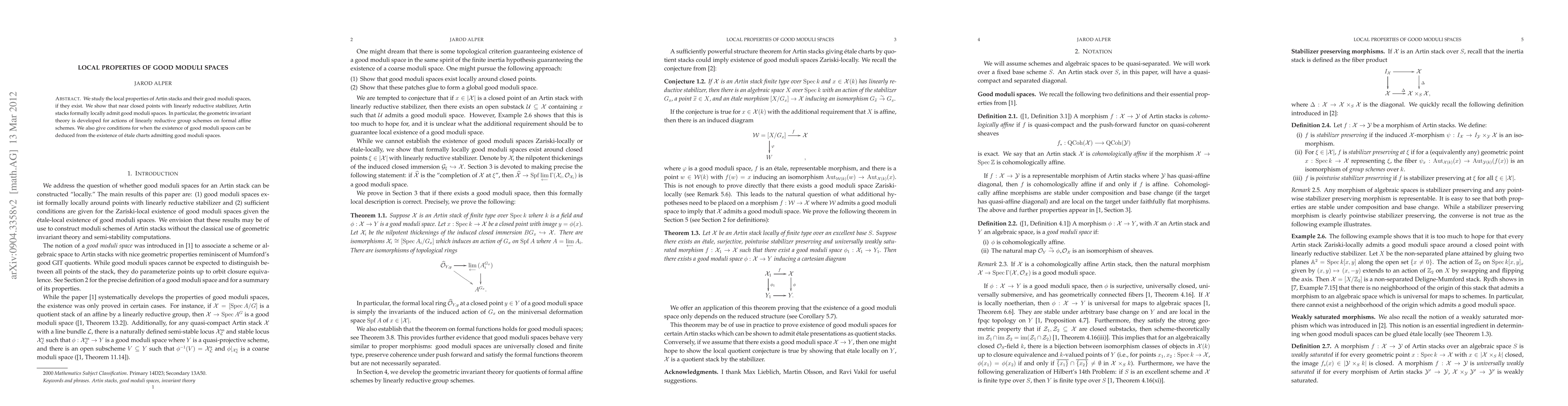 Summary: The paper investigates local properties of Artin stacks and their good moduli spaces, demonstrating that near closed points with linearly reductive stabilizers, Artin stacks can formally locally admit good moduli spaces, and provides conditions for when such existence can be inferred from the presence of étale charts with good moduli spaces.