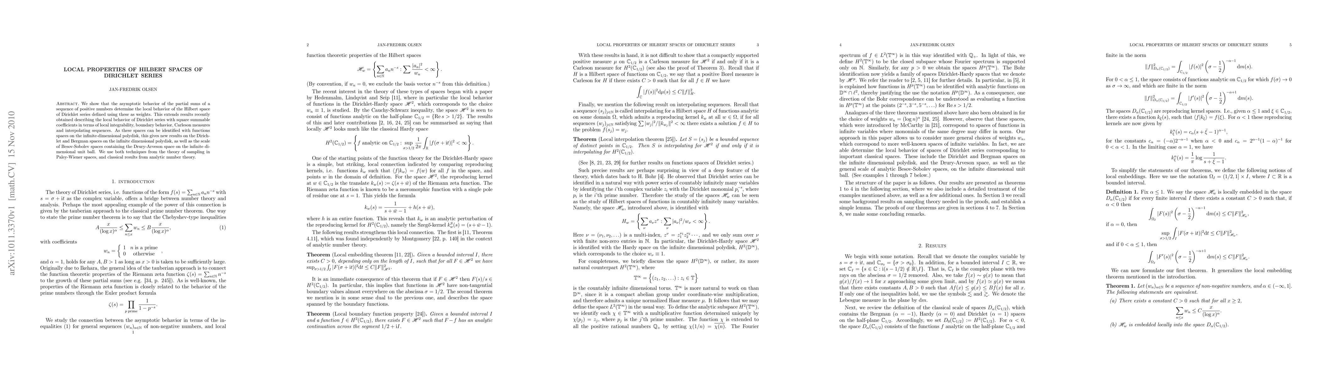 We show that the asymptotic behavior of the partial sums of a sequence of positive numbers determine the local behavior of the Hilbert space of Dirichlet series defined using these as weights. This extends results recently obtained describing the local behavior of Dirichlet series with square summable coefficients in terms of local integrability, boundary behavior, Carleson measures and interpolating sequences. As these spaces can be identified with functions spaces on the infinite-dimensional polydisk, this gives new results on the Dirichlet and Bergman spaces on the infinite dimensional polydisk, as well as the scale of Besov-Sobolev spaces containing the Drury-Arveson space on the infinite dimensional unit ball. We use both techniques from the theory of sampling in Paley-Wiener spaces, and classical results from analytic number theory.