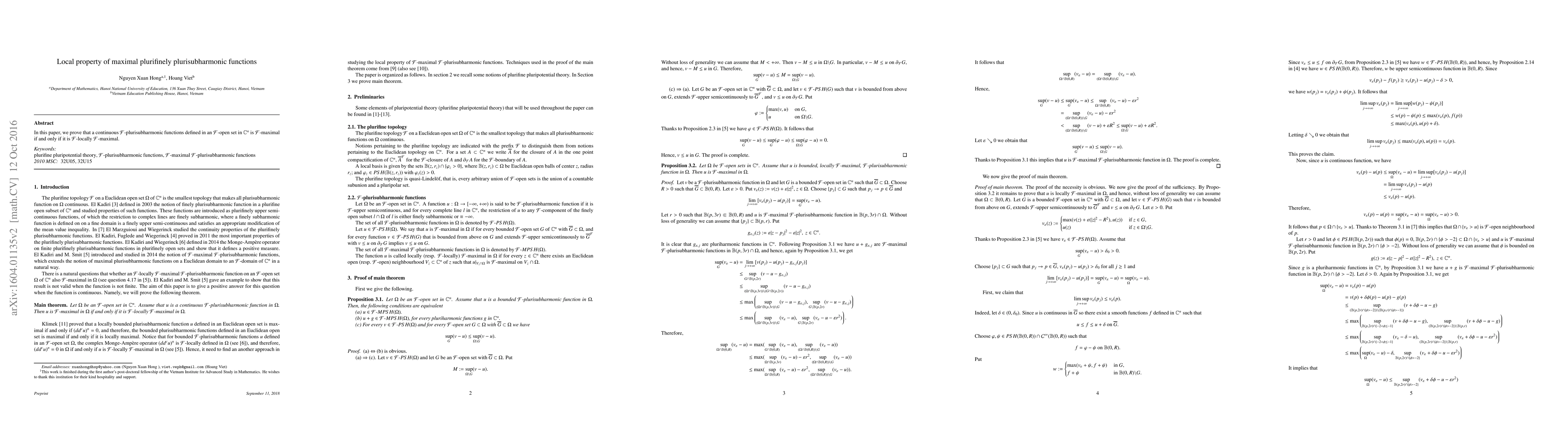 Summary: This paper establishes that a continuous $\mathcal F$-plurisubharmonic function in an $\mathcal F$-open set in $\mathbb C^n$ is $\mathcal F$-maximal if and only if it is $\mathcal F$-locally $\mathcal F$-maximal, demonstrating the local property of such functions.