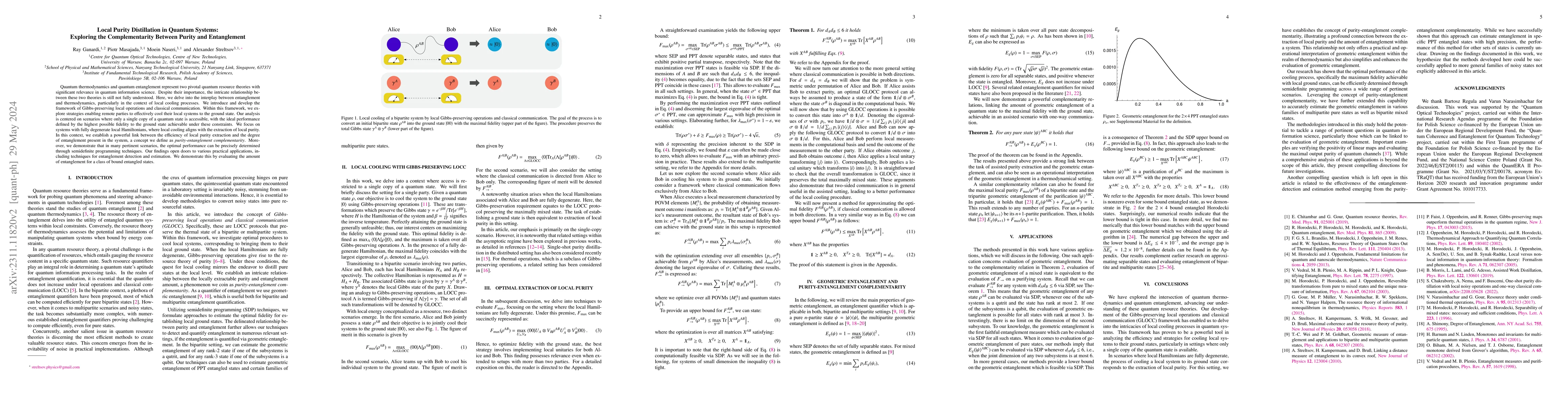 This paper explores the interplay between quantum entanglement and thermodynamics, introducing local purity distillation frameworks. It reveals a link between the efficiency of local purity extraction and entanglement, termed purity-entanglement complementarity, and demonstrates optimal strategies for achieving ground state cooling using semidefinite programming.