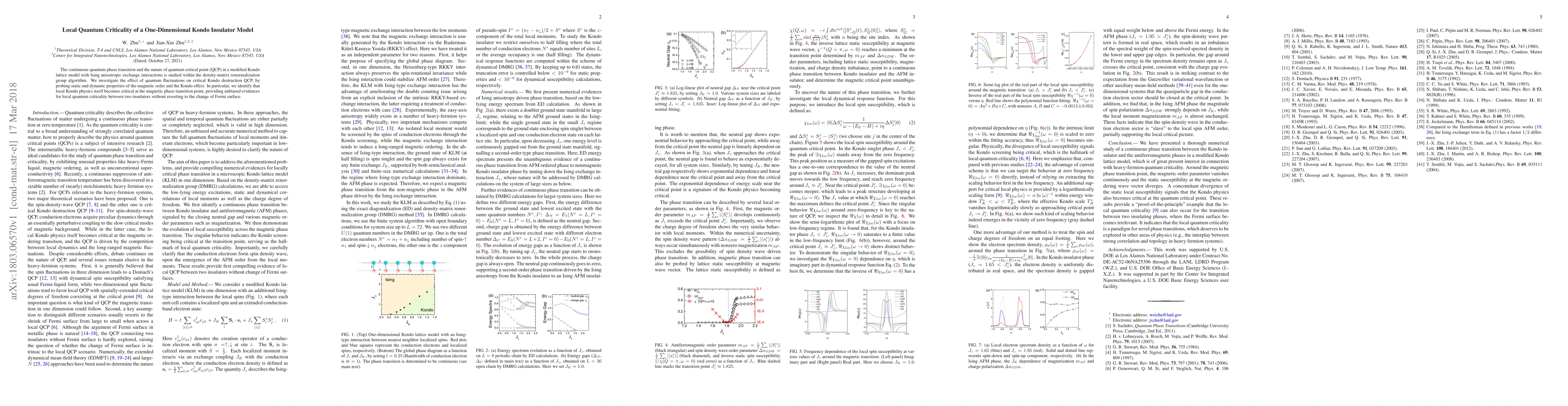 The continuous quantum phase transition and the nature of quantum critical point (QCP) in a modified Kondo lattice model with Ising anisotropic exchange interactions is studied within the density-matrix renormalization group algorithm. We investigate the effect of quantum fluctuations on critical Kondo destruction QCP, by probing static and dynamic properties of the magnetic order and the Kondo effect. In particular, we identify that local Kondo physics itself becomes critical at the magnetic phase transition point, providing unbiased evidences for local quantum criticality between two insulators without resorting to the change of Fermi surface.