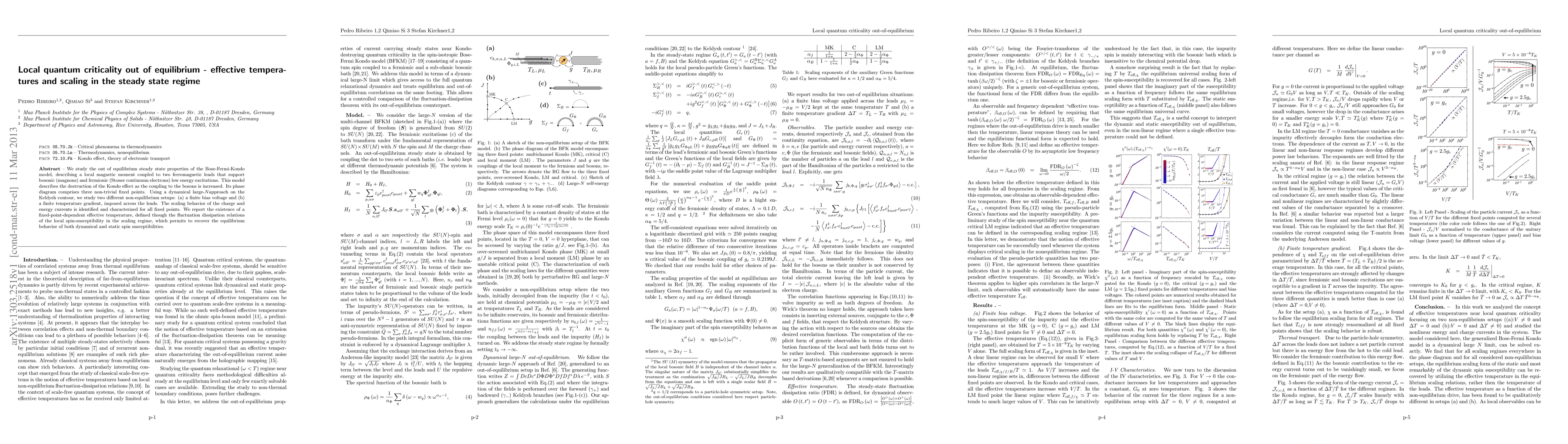Researchers studied a quantum model with a local magnetic moment coupled to fermionic and bosonic leads, finding three non-trivial fixed points that influence an effective temperature determined by fluctuation dissipation relations.