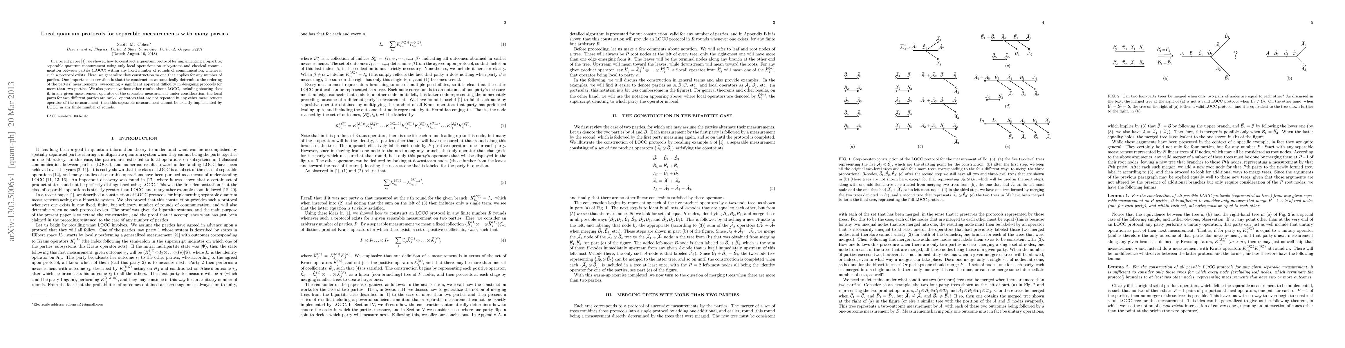 Researchers developed a protocol to perform separable quantum measurements with multiple parties using only local operations and classical communication, resolving an apparent difficulty in designing protocols for more than two parties. The construction ensures the correct ordering of party measurements and prevents certain types of separable measurements from being implemented via LOCC.