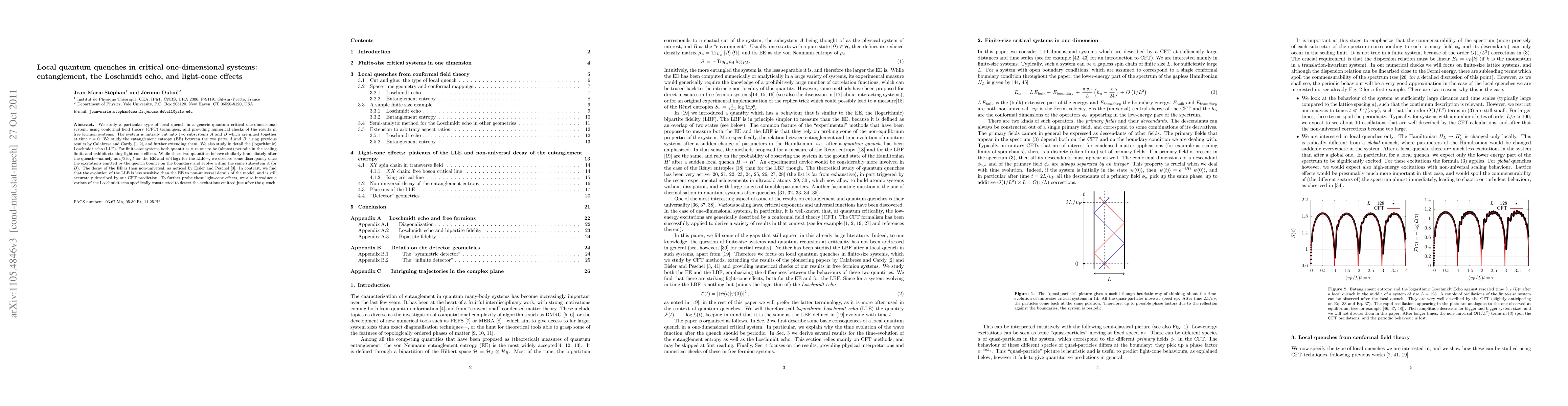 Researchers studied local quantum quenches in critical one-dimensional systems, finding that entanglement entropy and Loschmidt echo exhibit striking light-cone effects, with the latter being less sensitive to non-universal model details.