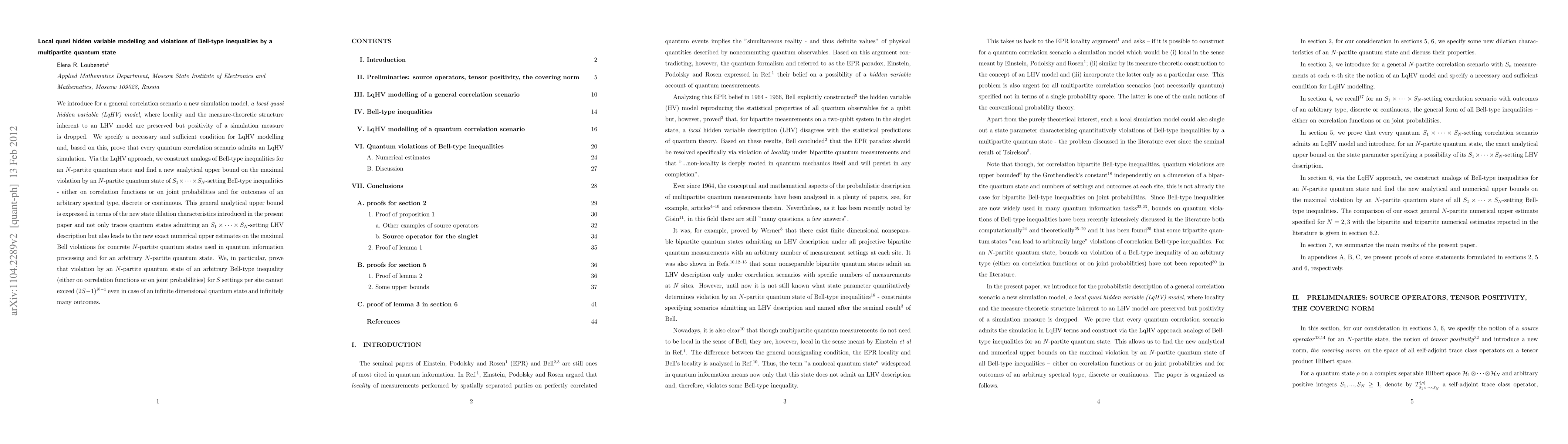 We introduce for a general correlation scenario a new simulation model, a local quasi hidden variable (LqHV) model, where locality and the measure-theoretic structure inherent to an LHV model are preserved but positivity of a simulation measure is dropped. We specify a necessary and sufficient condition for LqHV modelling and, based on this, prove that every quantum correlation scenario admits an LqHV simulation. Via the LqHV approach, we construct analogs of Bell-type inequalities for an N-partite quantum state and find a new analytical upper bound on the maximal violation by an N-partite quantum state of S_{1}x...xS_{N}-setting Bell-type inequalities - either on correlation functions or on joint probabilities and for outcomes of an arbitrary spectral type, discrete or continuous. This general analytical upper bound is expressed in terms of the new state dilation characteristics introduced in the present paper and not only traces quantum states admitting an S_{1}x...xS_{N}-setting LHV description but also leads to the new exact numerical upper estimates on the maximal Bell violations for concrete N-partite quantum states used in quantum information processing and for an arbitrary N-partite quantum state. We, in particular, prove that violation by an N-partite quantum state of an arbitrary Bell-type inequality (either on correlation functions or on joint probabilities) for S settings per site cannot exceed (2S-1)^{N-1} even in case of an infinite dimensional quantum state and infinitely many outcomes.