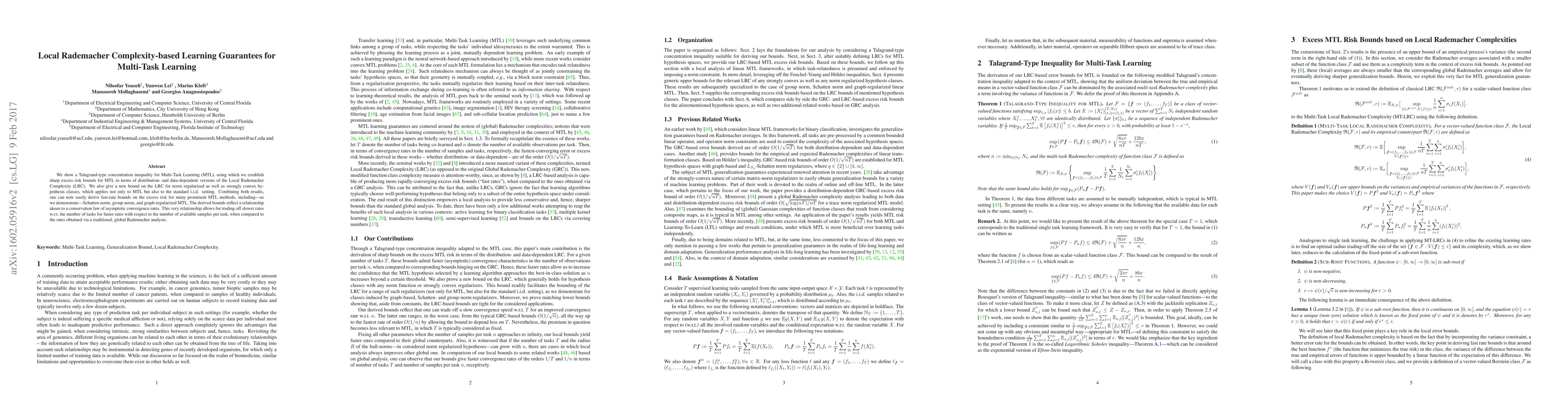 This paper establishes sharp excess risk bounds for Multi-Task Learning using Local Rademacher Complexity-based concentration inequalities, enabling fast-rate bounds for prominent MTL methods.
