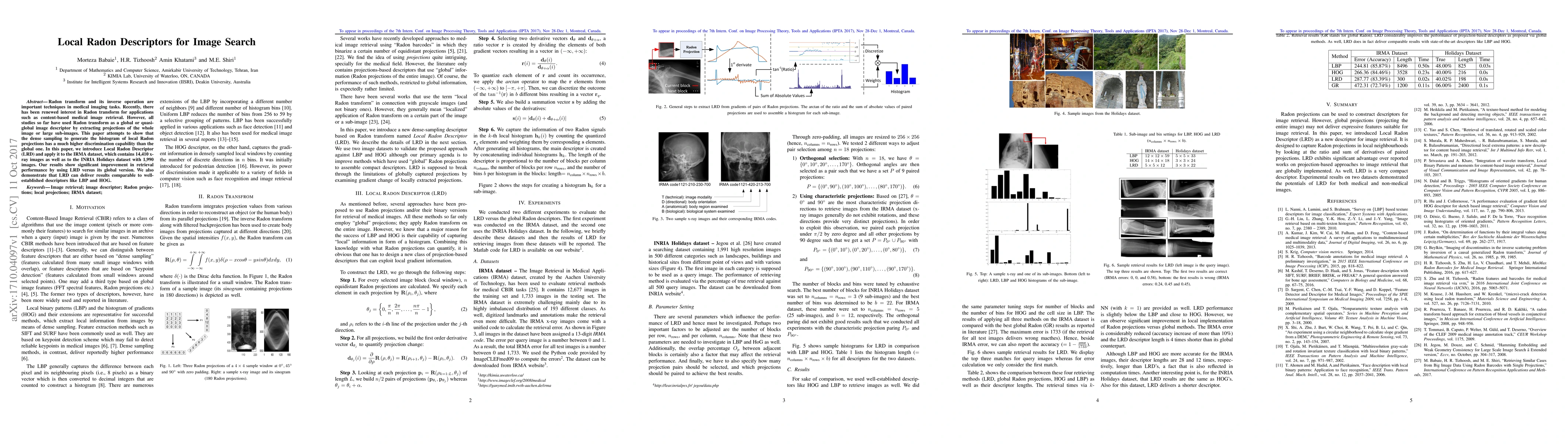 A new image search method called Local Radon Descriptor (LRD) improves content-based medical image retrieval performance by using local Radon projections instead of global ones, outperforming established descriptors like LBP and HOG.