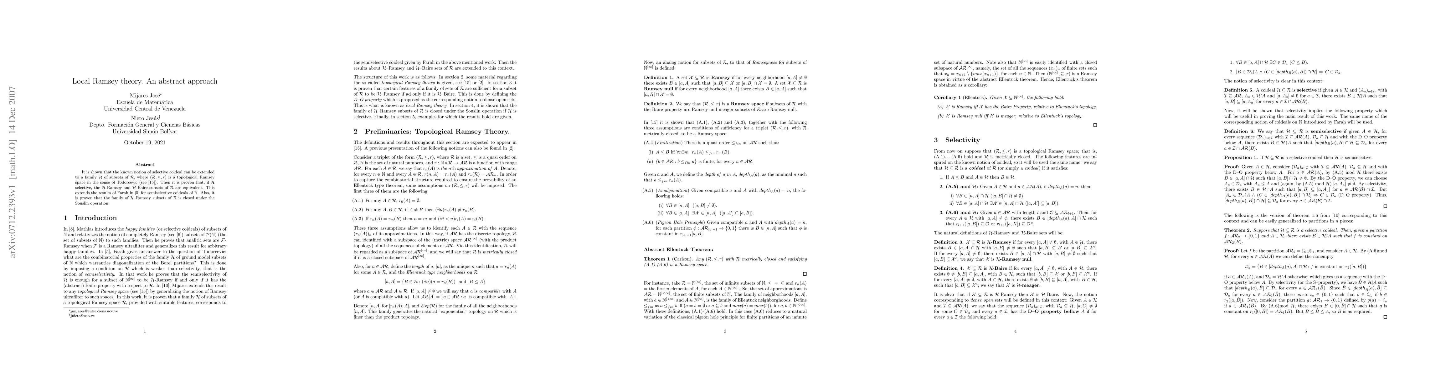 A research paper extends selective coideal theory to topological Ramsey spaces and proves that H-Ramsey subsets are equivalent to H-Baire subsets, with implications for the Souslin operation.