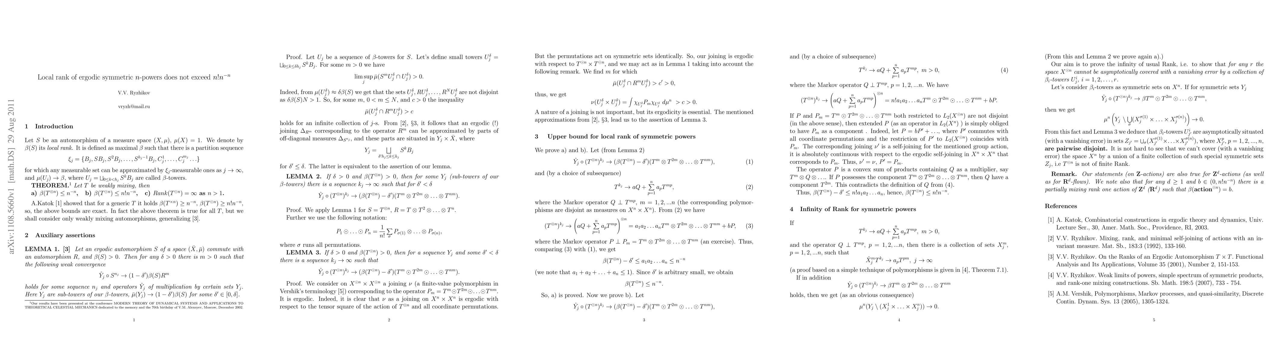 We prove that local rank of an ergodic symmetric power $T^{\odot n}$ does not exceed $n!n^{-n}$. A. Katok's old results show that this upper bound is exact. We prove also that $T^{\odot n}$ has infinite Rank as $n>1$.