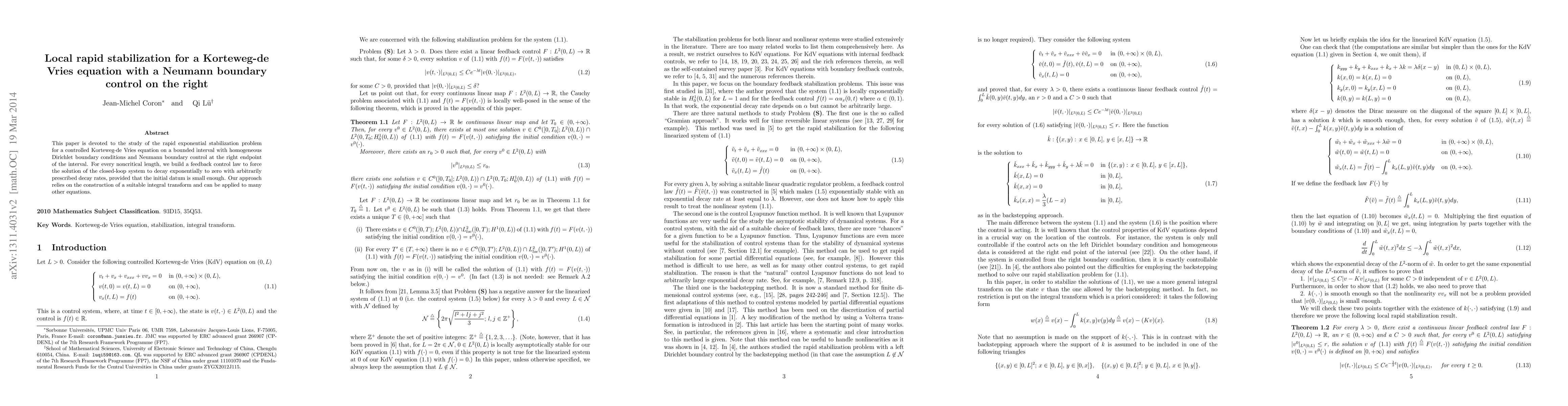 This paper investigates rapid exponential stabilization for a controlled Korteweg-de Vries equation with Neumann boundary control at the right endpoint. A feedback control law is developed to achieve exponential decay of the solution for small initial data, utilizing a suitable integral transform.