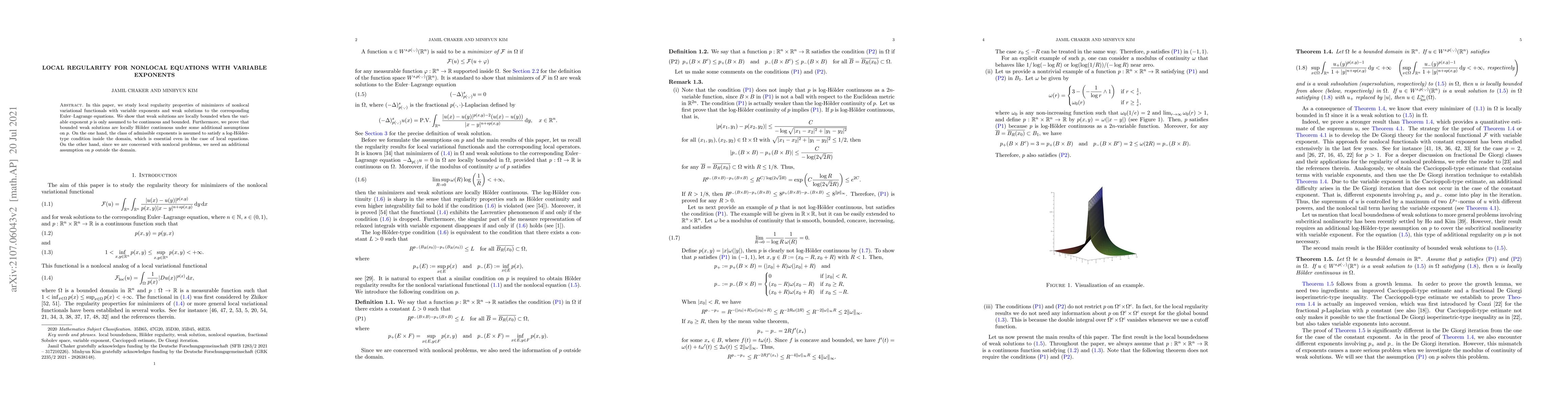 This paper investigates local regularity properties of minimizers and weak solutions for nonlocal variational functionals with variable exponents. It demonstrates that weak solutions are locally bounded under continuity and boundedness of the variable exponent $p$, and proves local H\"older continuity of bounded weak solutions given additional assumptions on $p$ satisfying a log-H\"older-type condition.