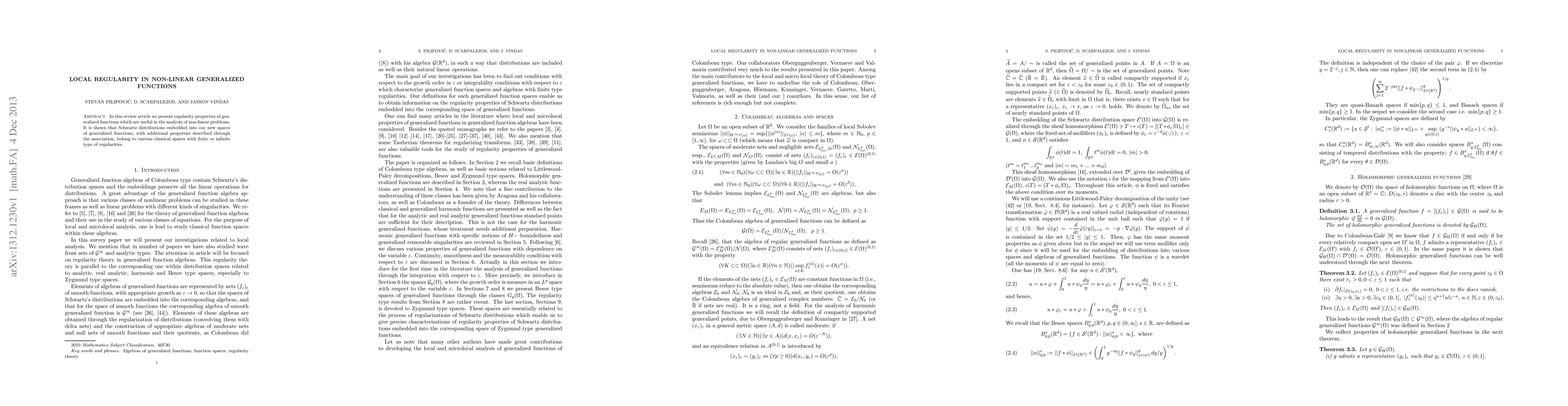 This review article explores regularity properties of generalized functions in non-linear analysis, showing that certain distributions belong to classical spaces with finite or infinite regularities.