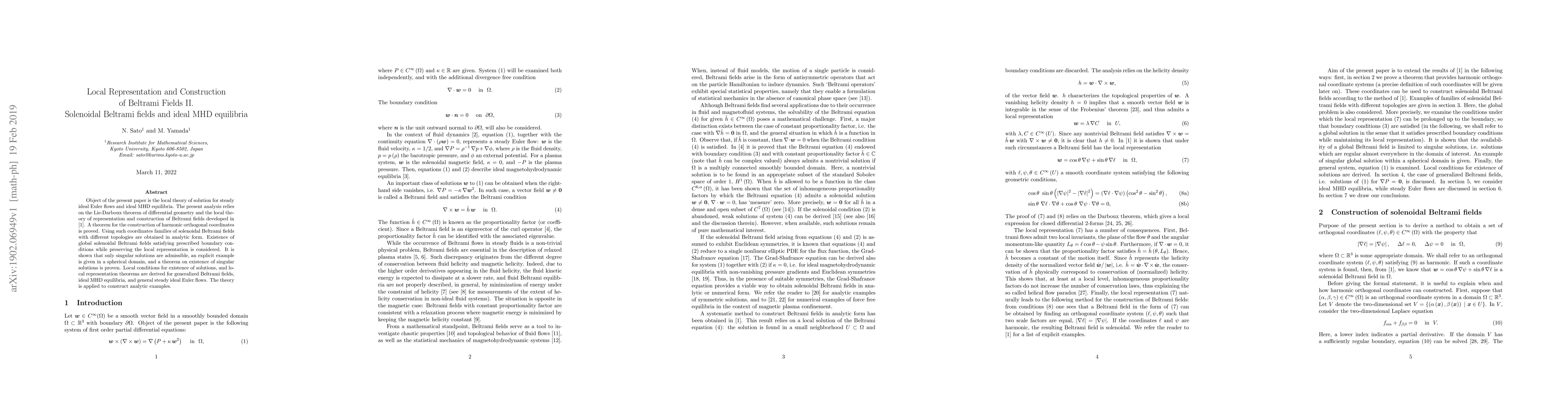 Object of the present paper is the local theory of solution for steady ideal Euler flows and ideal MHD equilibria. The present analysis relies on the Lie-Darboux theorem of differential geometry and the local theory of representation and construction of Beltrami fields developed in [1]. A theorem for the construction of harmonic orthogonal coordinates is proved. Using such coordinates families of solenoidal Beltrami fields with different topologies are obtained in analytic form. Existence of global solenoidal Beltrami fields satisfying prescribed boundary conditions while preserving the local representation is considered. It is shown that only singular solutions are admissible, an explicit example is given in a spherical domain, and a theorem on existence of singular solutions is proven. Local conditions for existence of solutions, and local representation theorems are derived for generalized Beltrami fields, ideal MHD equilibria, and general steady ideal Euler flows. The theory is applied to construct analytic examples.