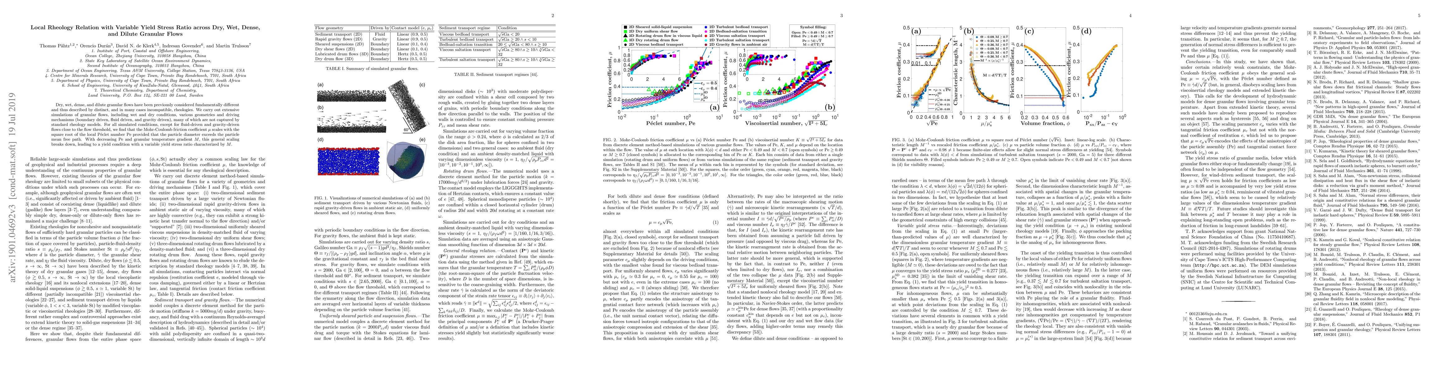 This paper investigates granular flows across various conditions and finds a universal scaling relationship between the Mohr-Coulomb friction coefficient and the local Péclet number, valid for granular flows where particle diameters exceed the mean free path. However, this scaling breaks down at lower Péclet numbers and granular temperature gradients, introducing a variable yield stress ratio.