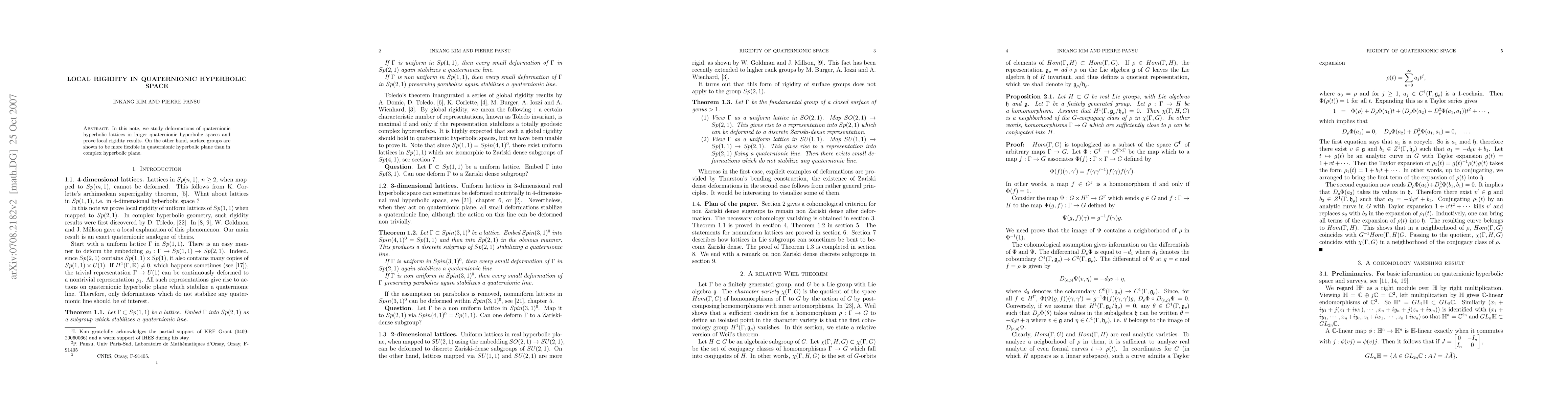 Summary: This paper proves local rigidity for quaternionic hyperbolic lattices and demonstrates that surface groups exhibit greater flexibility in quaternionic hyperbolic space compared to complex hyperbolic space.