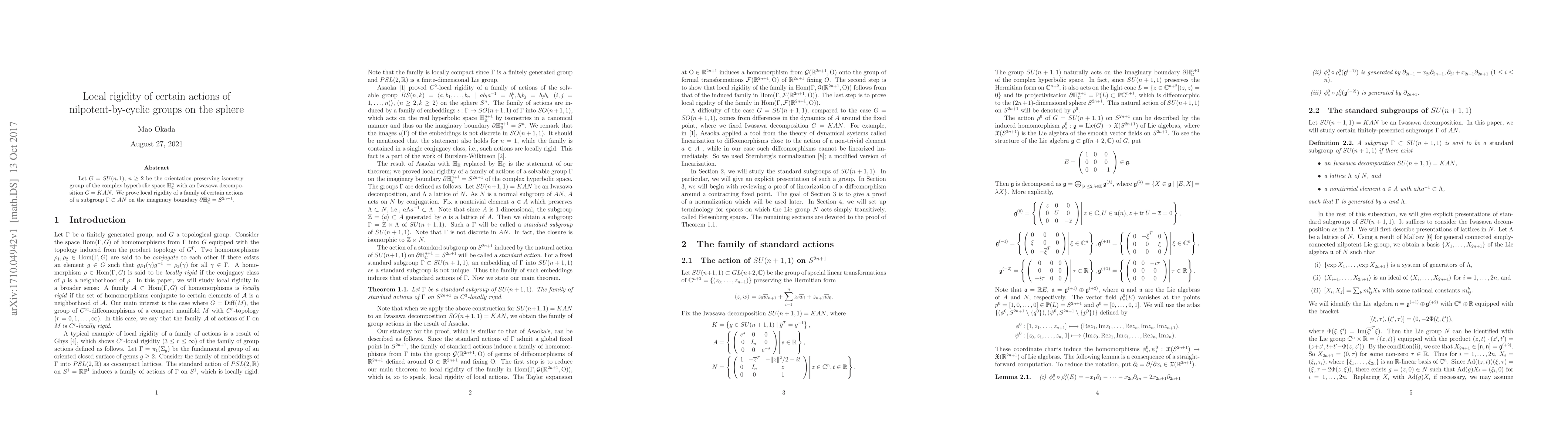This paper proves local rigidity for specific actions of a subgroup within AN on the imaginary boundary of complex hyperbolic space, utilizing the Iwasawa decomposition of SU(n,1) group isometries.