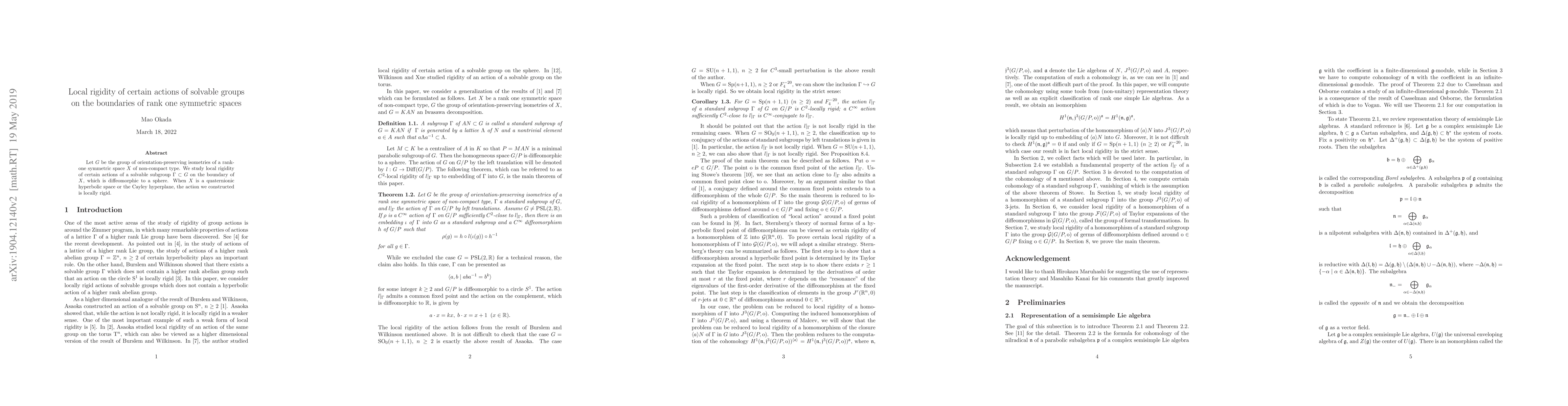 This paper investigates the local rigidity of specific actions of solvable subgroups within the group of orientation-preserving isometries of quaternionic hyperbolic space or the Cayley hyperplane on their respective boundaries. The authors demonstrate that these actions are locally rigid.