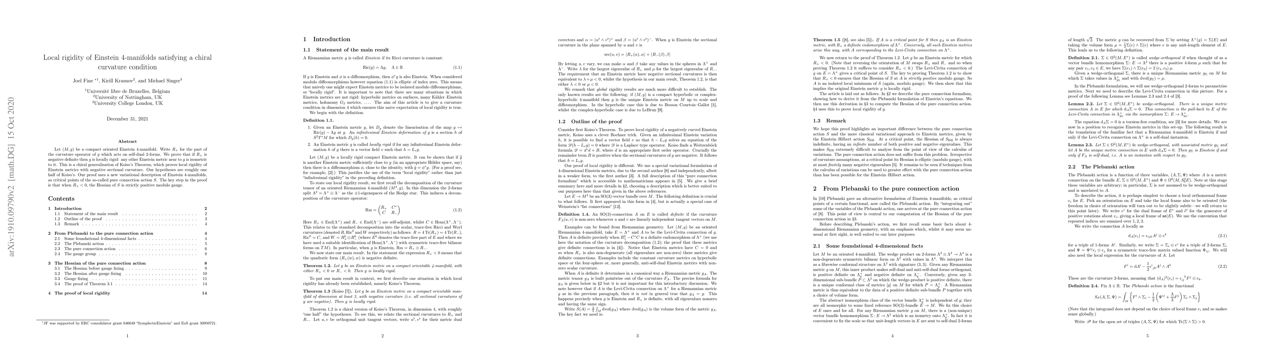 Let (M,g) be a compact oriented Einstein 4-manifold. Write R-plus for the part of the curvature operator of g which acts on self-dual 2-forms. We prove that if R-plus is negative definite then g is locally rigid: any other Einstein metric near to g is isometric to it. This is a chiral generalisation of Koiso's Theorem, which proves local rigidity of Einstein metrics with negative sectional curvatures. Our hypotheses are roughly one half of Koiso's. Our proof uses a new variational description of Einstein 4-manifolds, as critical points of the so-called poure connection action S. The key step in the proof is that when R-plus is negative definite, the Hessian of S is strictly positive modulo gauge.