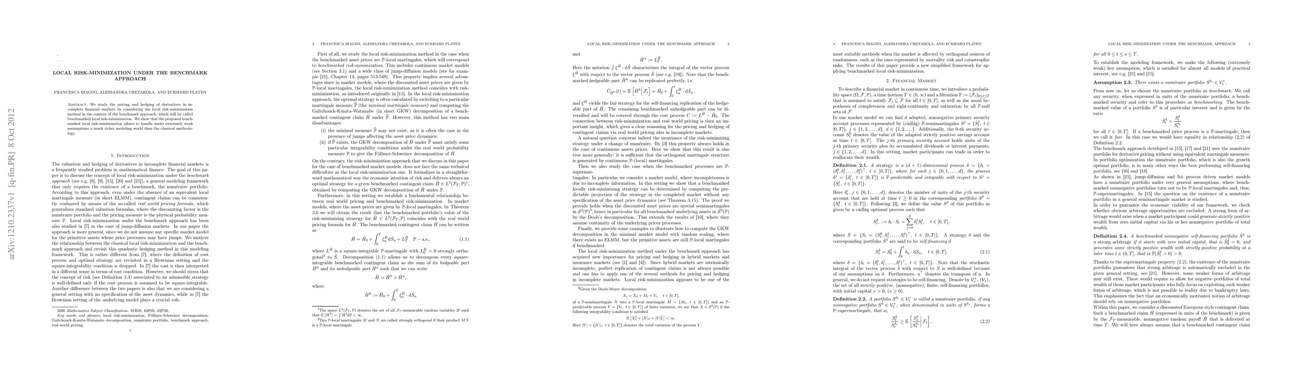 The paper introduces and develops the concept of benchmarked local risk-minimization, extending classical methods to handle a broader range of financial models under weaker assumptions.