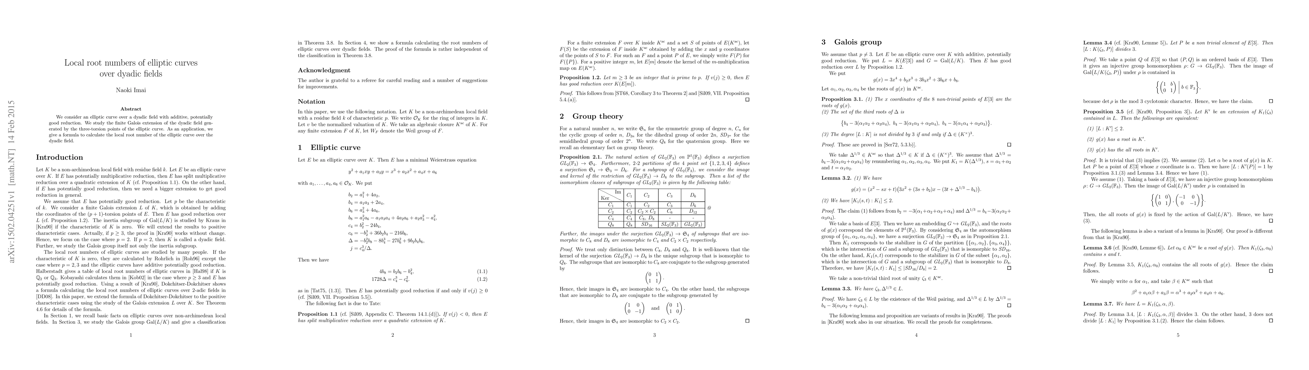 This paper investigates elliptic curves over dyadic fields with additive, potentially good reduction, focusing on the finite Galois extension generated by the three-torsion points. It provides a formula for calculating the local root number of such elliptic curves over dyadic fields.