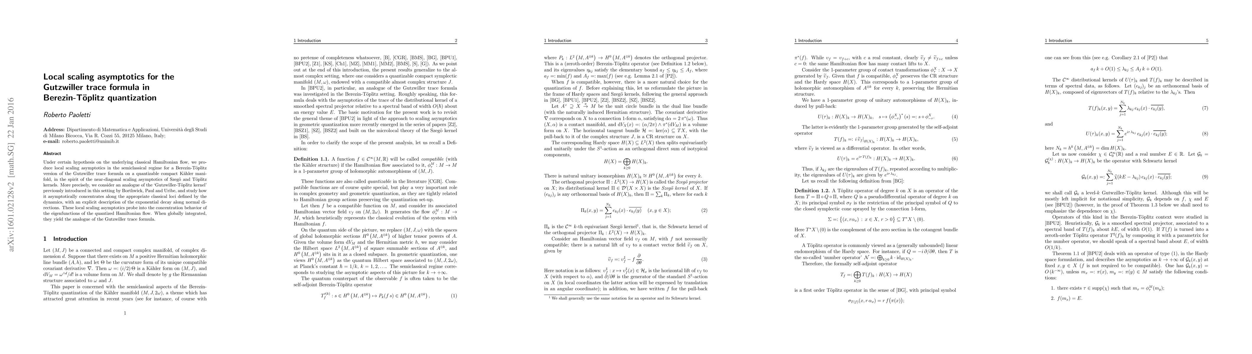 This paper develops local scaling asymptotics for a Berezin-Töplitz version of the Gutzwiller trace formula on quantizable compact Kähler manifolds, focusing on the concentration behavior of the eigenfunctions of the quantized Hamiltonian flow. The study provides an explicit description of the exponential decay along normal directions, yielding an analogue of the Gutzwiller trace formula when globally integrated.