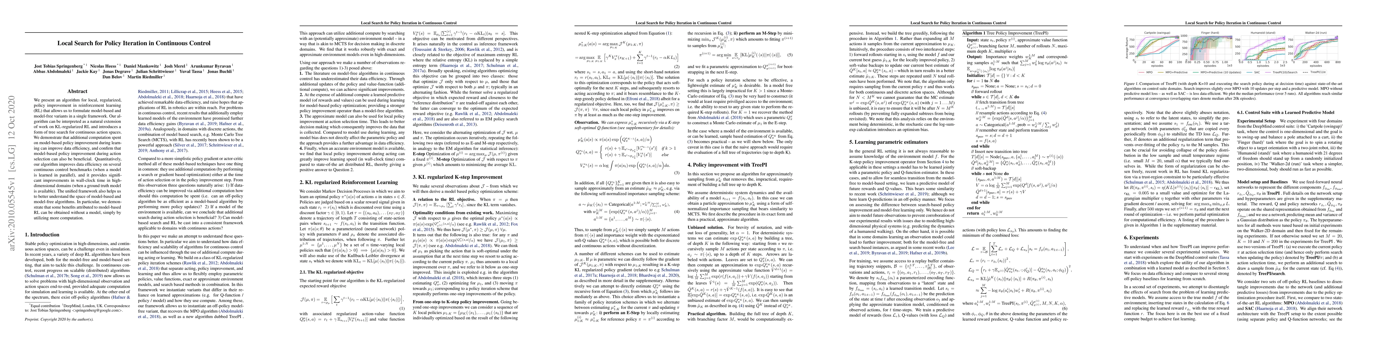 We present an algorithm for local, regularized, policy improvement in reinforcement learning (RL) that allows us to formulate model-based and model-free variants in a single framework. Our algorithm can be interpreted as a natural extension of work on KL-regularized RL and introduces a form of tree search for continuous action spaces. We demonstrate that additional computation spent on model-based policy improvement during learning can improve data efficiency, and confirm that model-based policy improvement during action selection can also be beneficial. Quantitatively, our algorithm improves data efficiency on several continuous control benchmarks (when a model is learned in parallel), and it provides significant improvements in wall-clock time in high-dimensional domains (when a ground truth model is available). The unified framework also helps us to better understand the space of model-based and model-free algorithms. In particular, we demonstrate that some benefits attributed to model-based RL can be obtained without a model, simply by utilizing more computation.