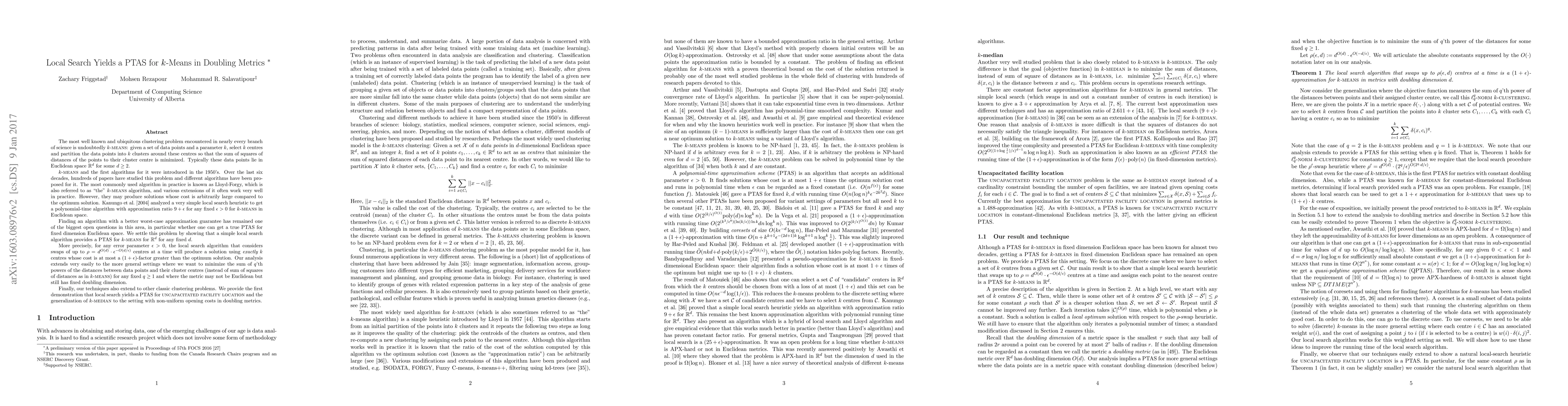 The most well known and ubiquitous clustering problem encountered in nearly every branch of science is undoubtedly $k$-means: given a set of data points and a parameter $k$, select $k$ centres and partition the data points into $k$ clusters around these centres so that the sum of squares of distances of the points to their cluster centre is minimized. Typically these data points lie $\mathbb{R}^d$ for some $d\geq 2$. $k$-means and the first algorithms for it were introduced in the 1950's. Since then, hundreds of papers have studied this problem and many algorithms have been proposed for it. The most commonly used algorithm is known as Lloyd-Forgy, which is also referred to as "the" $k$-means algorithm, and various extensions of it often work very well in practice. However, they may produce solutions whose cost is arbitrarily large compared to the optimum solution. Kanungo et al. [2004] analyzed a simple local search heuristic to get a polynomial-time algorithm with approximation ratio $9+\epsilon$ for any fixed $\epsilon>0$ for $k$-means in Euclidean space. Finding an algorithm with a better approximation guarantee has remained one of the biggest open questions in this area, in particular whether one can get a true PTAS for fixed dimension Euclidean space. We settle this problem by showing that a simple local search algorithm provides a PTAS for $k$-means in $\mathbb{R}^d$ for any fixed $d$. More precisely, for any error parameter $\epsilon>0$, the local search algorithm that considers swaps of up to $\rho=d^{O(d)}\cdot{\epsilon}^{-O(d/\epsilon)}$ centres at a time finds a solution using exactly $k$ centres whose cost is at most a $(1+\epsilon)$-factor greater than the optimum. Finally, we provide the first demonstration that local search yields a PTAS for the uncapacitated facility location problem and $k$-median with non-uniform opening costs in doubling metrics.