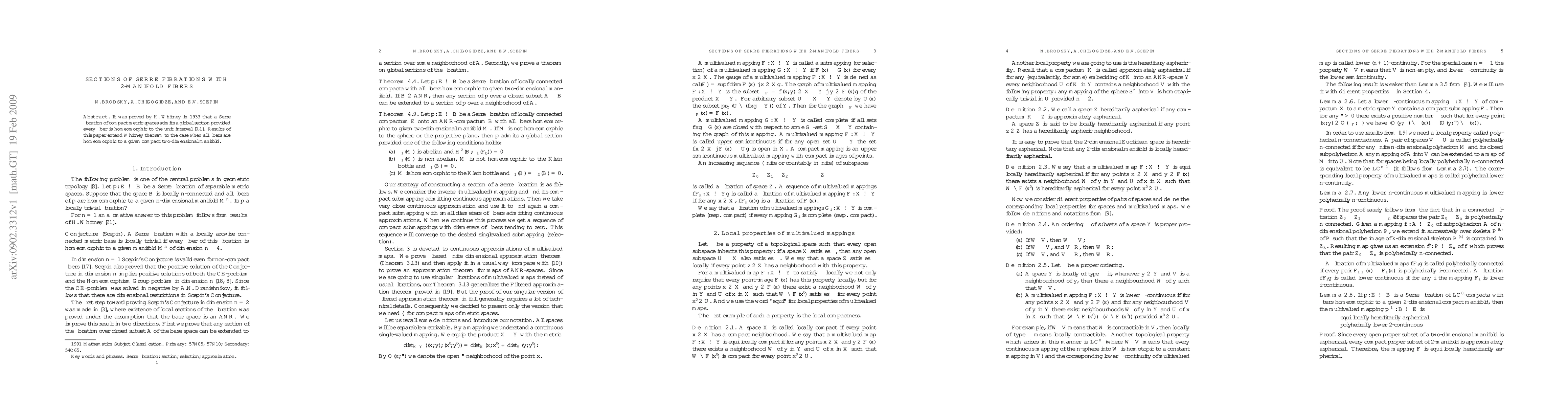 It was proved by H. Whitney in 1933 that a Serre fibration of compact metric spaces admits a global section provided every fiber is homeomorphic to the unit interval [0,1]. Results of this paper extend Whitney theorem to the case when all fibers are homeomorphic to a given compact two-dimensional manifold.