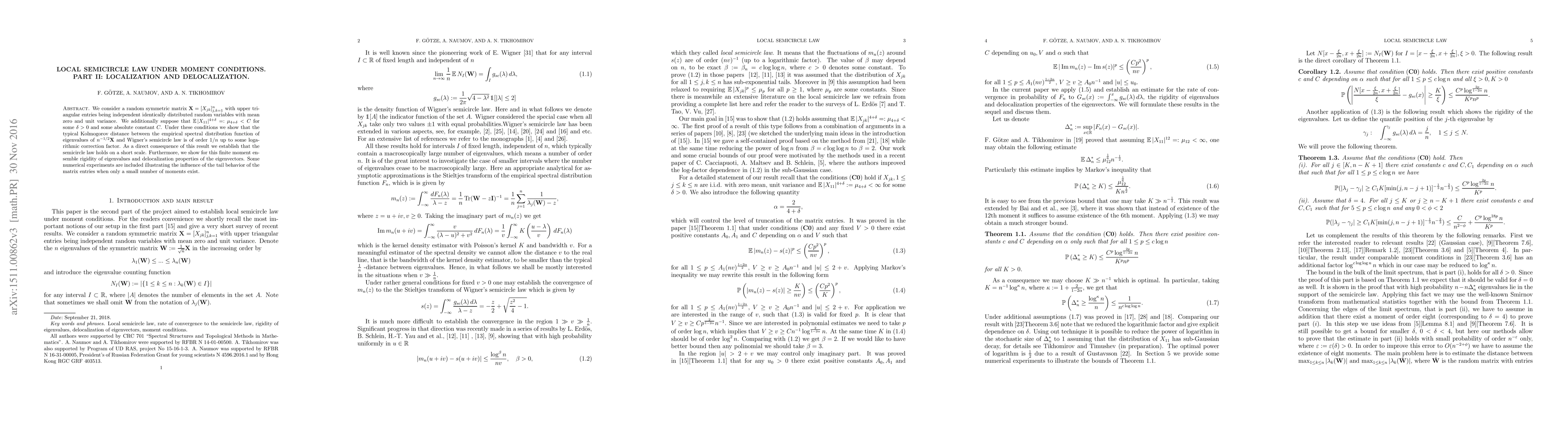 We consider a random symmetric matrix ${\bf X} = [X_{jk}]_{j,k=1}^n$ with upper triangular entries being independent identically distributed random variables with mean zero and unit variance. We additionally suppose that $\mathbb E |X_{11}|^{4 + \delta} =: \mu_{4+\delta} < C$ for some $\delta > 0$ and some absolute constant $C$. Under these conditions we show that the typical Kolmogorov distance between the empirical spectral distribution function of eigenvalues of $n^{-1/2} {\bf X}$ and Wigner's semicircle law is of order $1/n$ up to some logarithmic correction factor. As a direct consequence of this result we establish that the semicircle law holds on a short scale. Furthermore, we show for this finite moment ensemble rigidity of eigenvalues and delocalization properties of the eigenvectors. Some numerical experiments are included illustrating the influence of the tail behavior of the matrix entries when only a small number of moments exist.