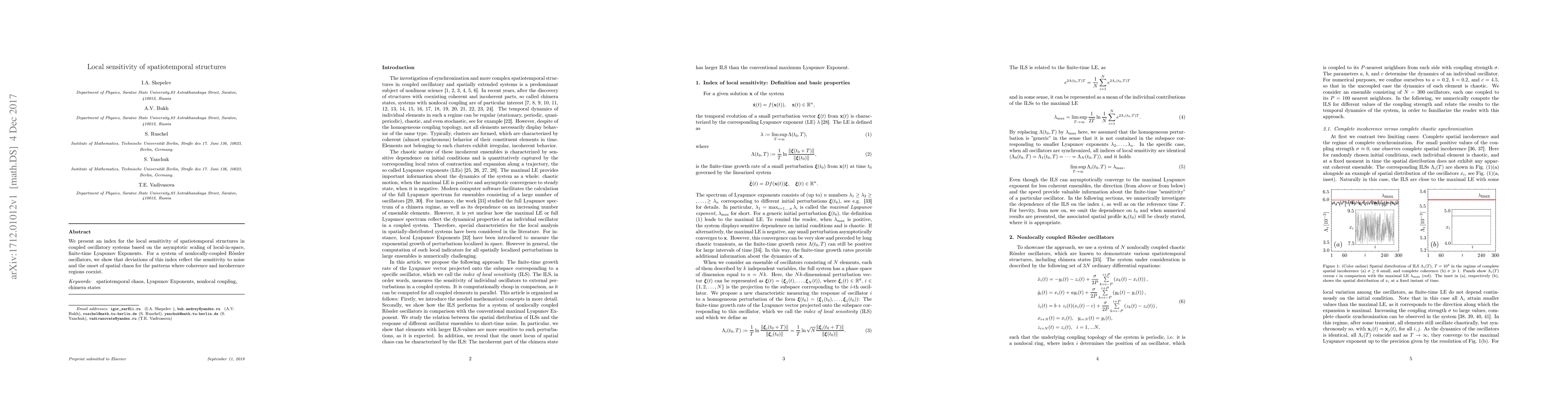 Researchers developed an index to measure local sensitivity in spatiotemporal structures of coupled oscillatory systems, finding that it reflects sensitivity to noise and the onset of spatial chaos in certain patterns.