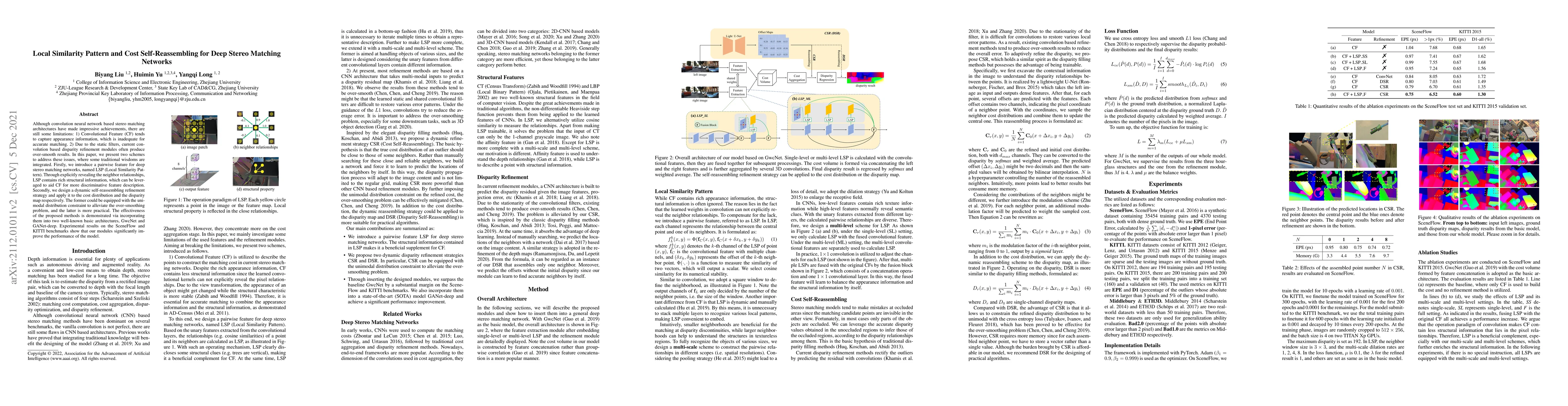 This paper proposes two methods to enhance deep stereo matching networks: a Local Similarity Pattern (LSP) for richer structural information and a dynamic self-reassembling refinement strategy to address over-smoothing. Experiments show significant performance improvements on SceneFlow and KITTI benchmarks.