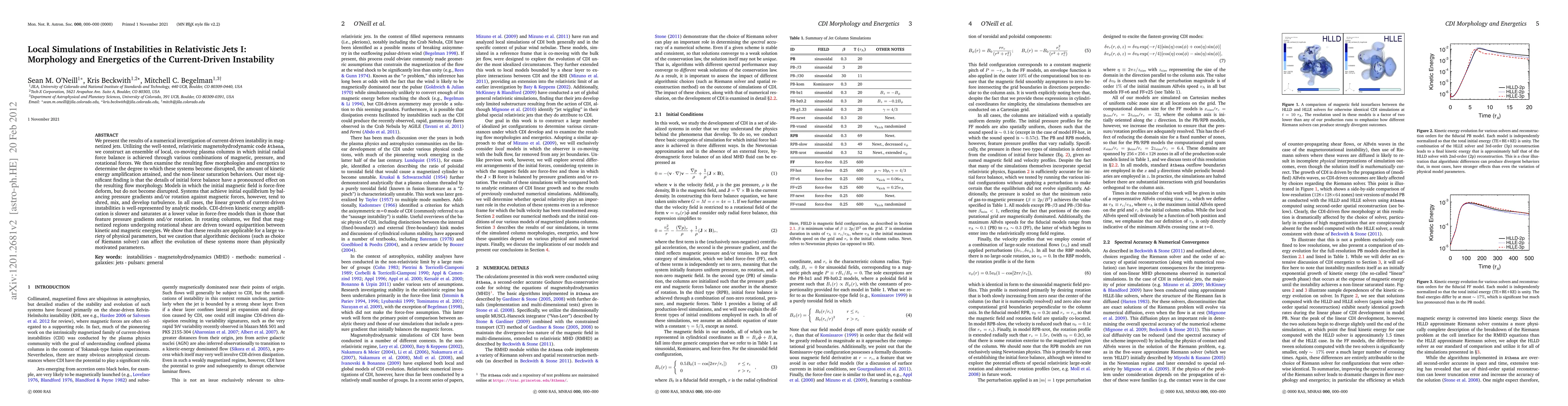 We present the results of a numerical investigation of current-driven instability in magnetized jets. Utilizing the well-tested, relativistic magnetohydrodynamic code Athena, we construct an ensemble of local, co-moving plasma columns in which initial radial force balance is achieved through various combinations of magnetic, pressure, and rotational forces. We then examine the resulting flow morphologies and energetics to determine the degree to which these systems become disrupted, the amount of kinetic energy amplification attained, and the non-linear saturation behaviors. Our most significant finding is that the details of initial force balance have a pronounced effect on the resulting flow morphology. Models in which the initial magnetic field is force-free deform, but do not become disrupted. Systems that achieve initial equilibrium by balancing pressure gradients and/or rotation against magnetic forces, however, tend to shred, mix, and develop turbulence. In all cases, the linear growth of current-driven instabilities is well-represented by analytic models. CDI-driven kinetic energy amplification is slower and saturates at a lower value in force-free models than in those that feature pressure gradients and/or rotation. In rotating columns, we find that magnetized regions undergoing rotational shear are driven toward equipartition between kinetic and magnetic energies. We show that these results are applicable for a large variety of physical parameters, but we caution that algorithmic decisions (such as choice of Riemann solver) can affect the evolution of these systems more than physically motivated parameters.